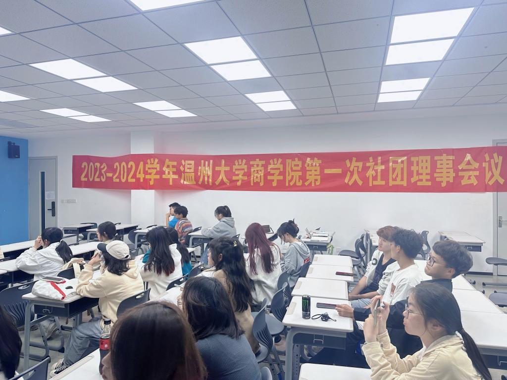 2023年10月21日18:30,温州大学商学院社团理事会在北校区2号楼107教室召开,本次会议主要是为了让各社团了解工作要求,以便更好地开展工作。会议由社团部干事林佳盈主持。各社团会长、财务部长、微刊制作部长共同参加此次会议。本次会议召开议程有社团理事会学习《温州大学商学院挂靠社团管理办法》等文件、各社团工作情况开展汇报、财务汇报。