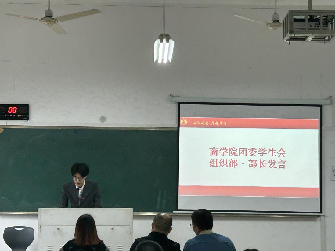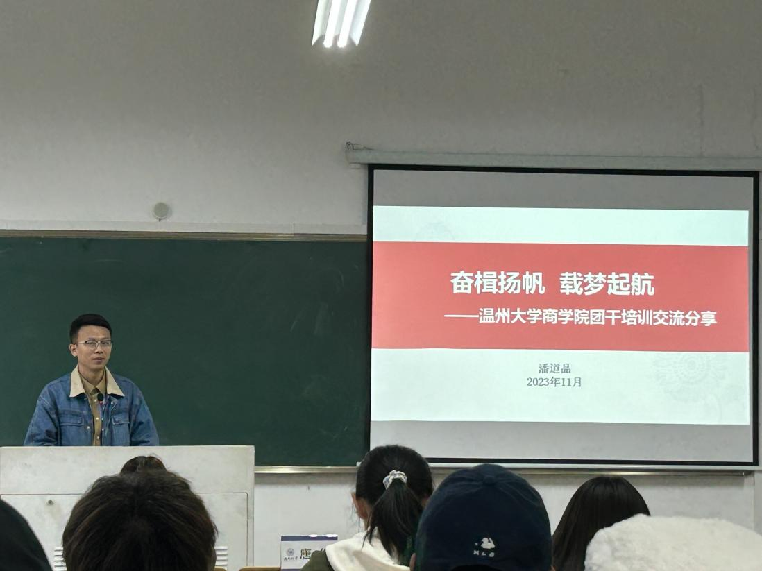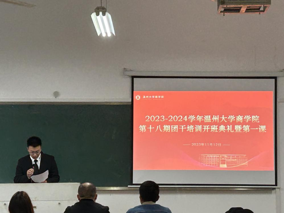 2023年11月12日下午14:30,温州大学商学院党委副书记唐华、招商银行温州分行团委书记、龙港支行副行长潘道品、温州大学商学院团委学生会指导老师张春洋、温州大学商学院团委学生会执行主席王文钰以及商学院团委学生会各部门齐聚北2-112教室,参加了本学期团干培训开班仪式。