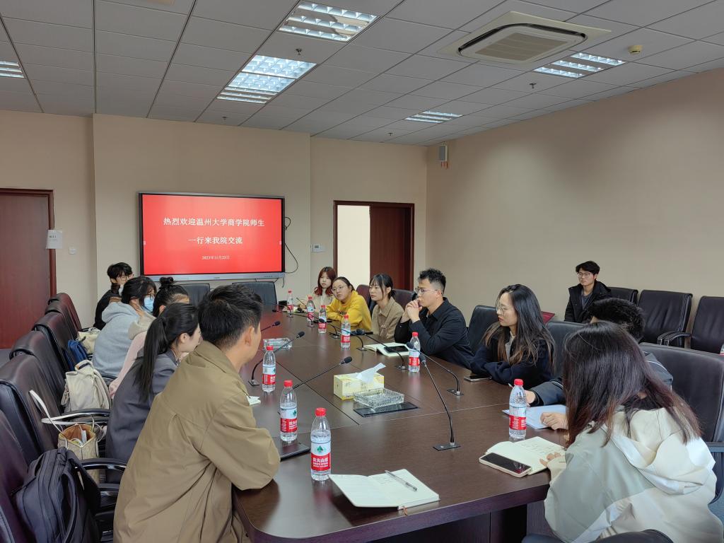 为了加强学院学生组织建设,更好地搭建好学院联系学生的桥梁和纽带,2023年11月23日15时,我院研会王景欣老师、学生科辅导员聂海燕、团学指导老师张春洋带领院研会主席团成员、党服中心主任,本科生团学主席团成员一行来到杭州电子科技大学信息工程学院学习交流。杭州电子科技大学信息工程学院经济学院党总支副书记王德超、团委书记石婷婷、辅导员江乐、辅导员周学和本科团学主席参加本次活动。会议过程双方围绕着如何开展学生工作、党建发展、团学架构建设、展开学习讨论并分享各自工作经验。