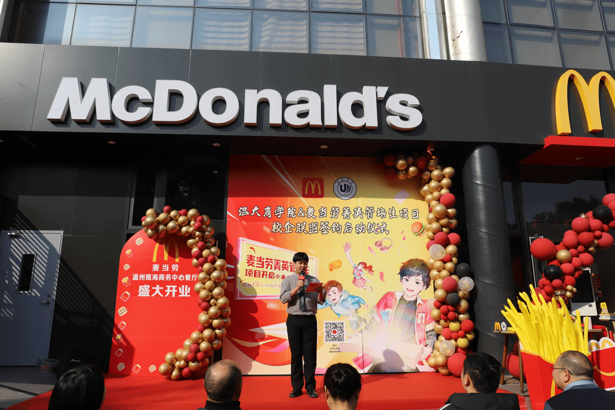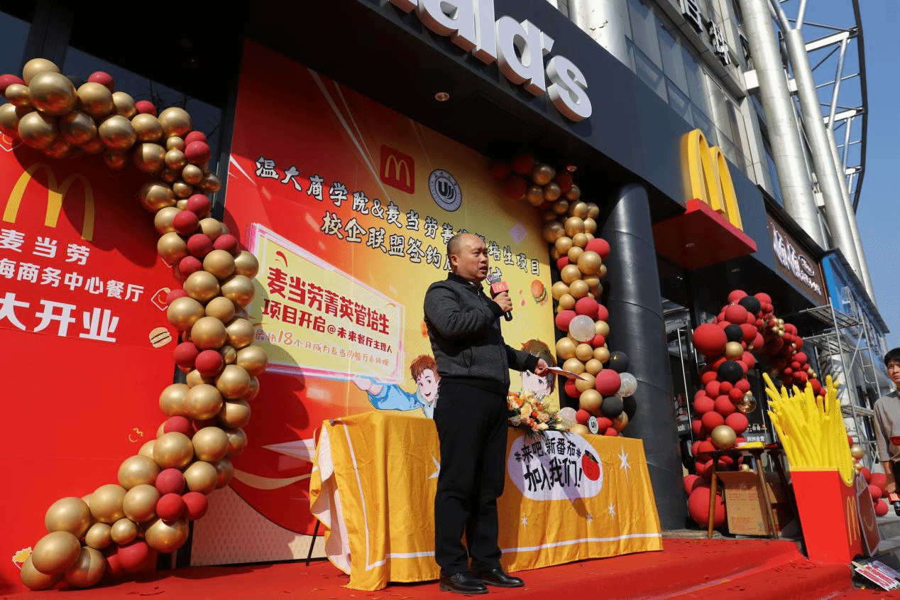 学院领导与麦当劳代表共同进行了剪彩仪式,象征着校企合作关系的正式启动。