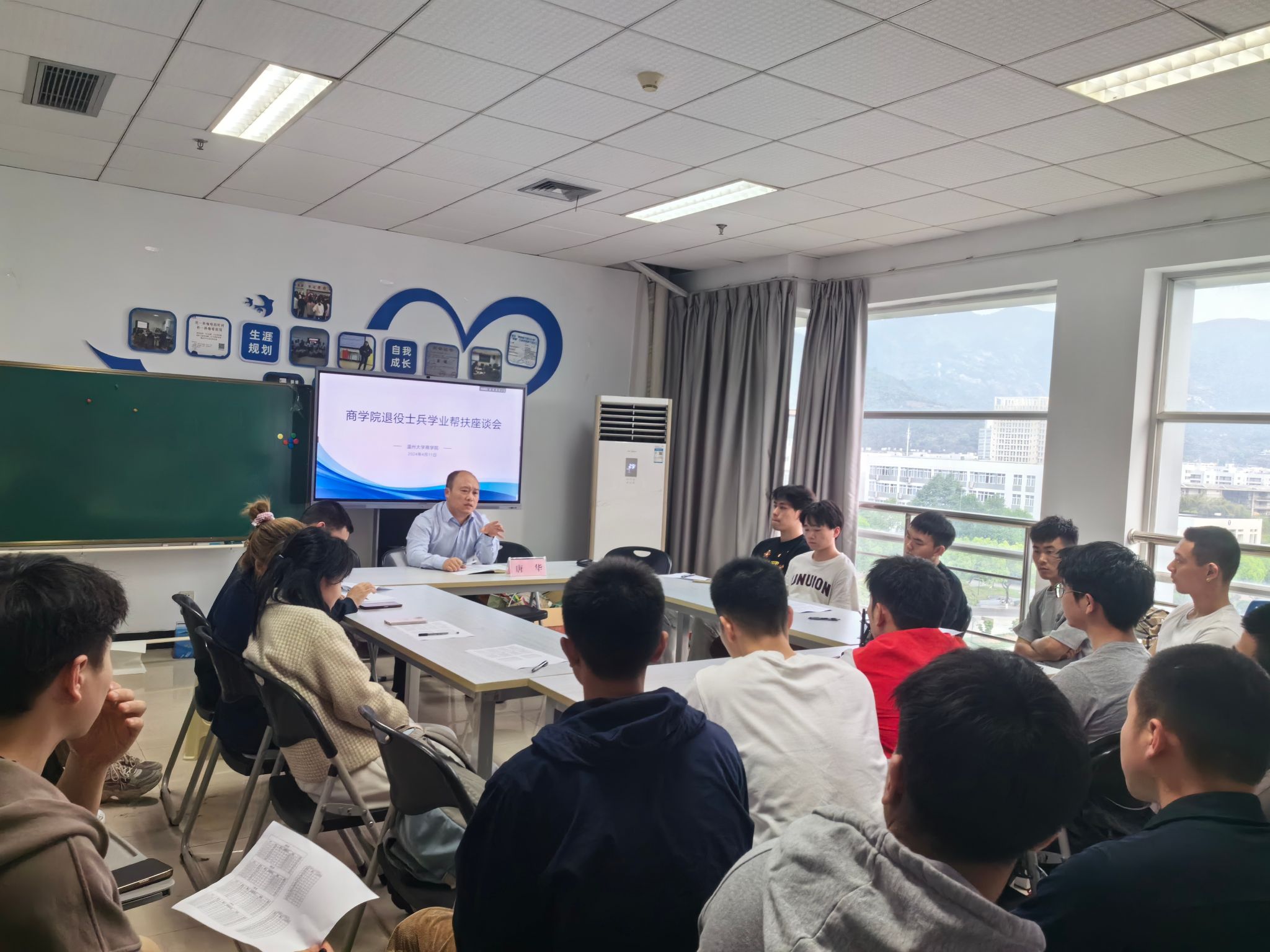 为深入了解我院退役大学生思想、学习、生活等情况,帮助他们排疑解惑,4月11日,商学院举行23级专升本退役大学生士兵学业帮扶座谈会。党委副书记唐华,学生科辅导员王景欣、张春洋以及27名退役大学生士兵参加会议。