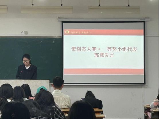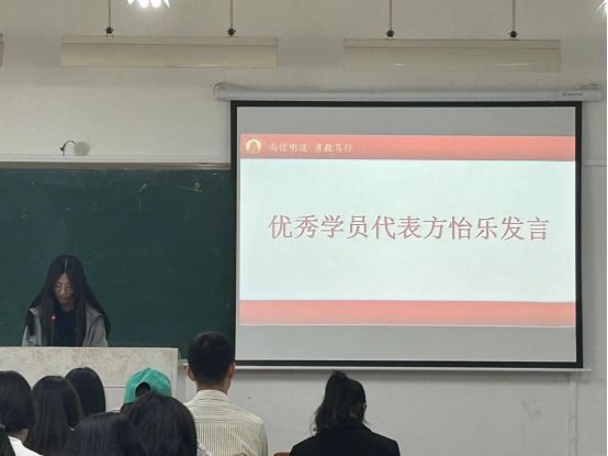 紧接着,优秀学员代表方怡乐发言,她分享了自己在这一学期以来的学习体会,阐述了在这一年里商学院团委学生会给自己带来的收获与成长。接着,策划案大赛一等奖小组代表郭慧发言,讲述了策划案大赛在团队协作和方案制定方面给自己带来的成长,并以小组在策划案大赛准备过程中的实际经历为例,总结了优点与不足,给大家提供了相关比赛经验。