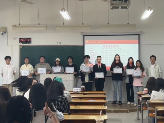 2024年5月15日14时00分,温州大学商学院团委学生会指导老师张春洋、温州大学商学院团委副书记王安琪、温州大学商学院团委学生会执行主席王文钰以及商学院团委学生会各部门齐聚北2-110教室,参加了本学期团干培训结业典礼。