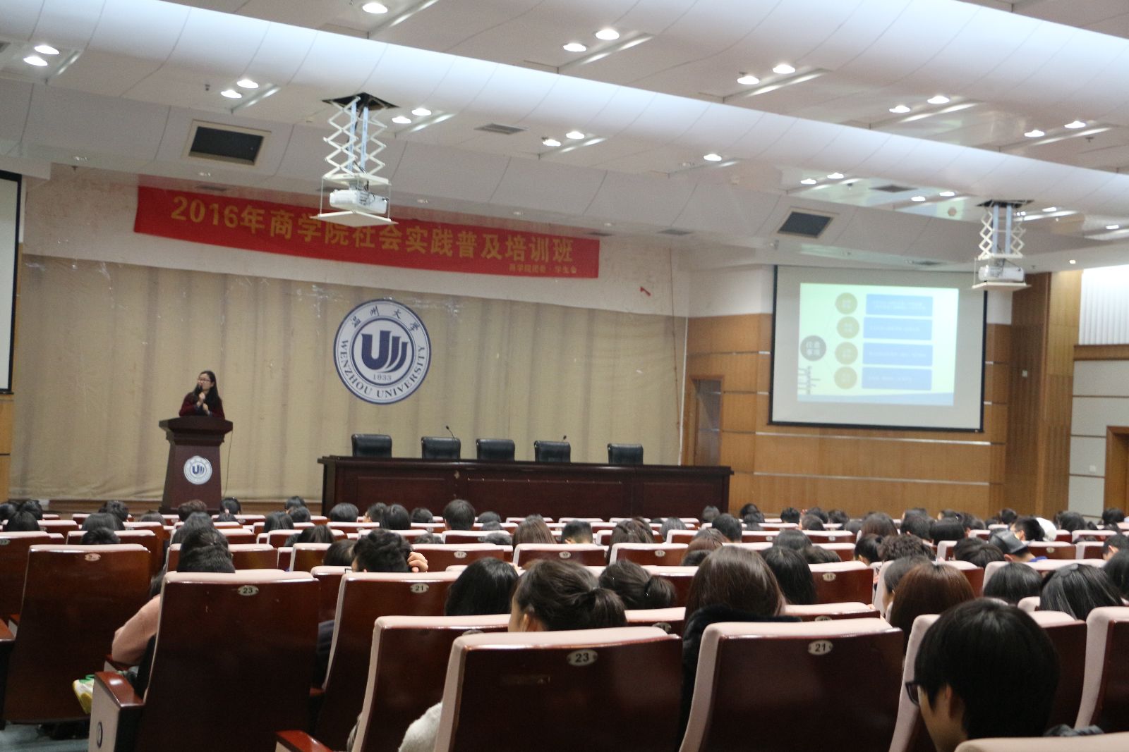 时间在指缝间一点点流过,不知不觉中,大一的同学们即将迎来他们的暑期社会实践活动。为了使大一的同学们更好地了解有关暑期社会实践活动的内容,温州大学商学院实践部举办了暑期社会实践基础培训班,为同学们答疑解惑,并且动员大一的同学们积极参与暑期社会实践方案策划大赛。商学院辅导员周洁文老师,商学院优秀实践队队长姜阳琦同学,肖勤拓同学、教师教育学院杨然同学,楼苗彦同学和商学院全体大一的同学们参加了本次培训班的培训。