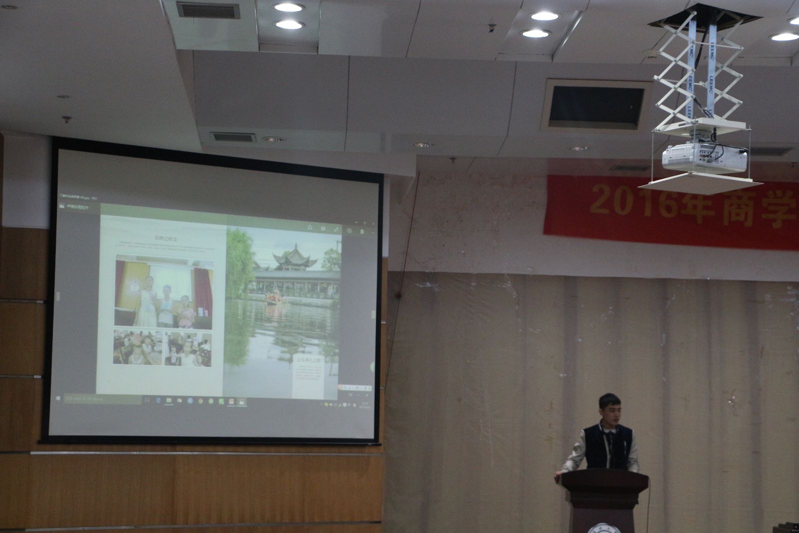 大会伊始,主持人向同学们展示了温州大学2015年度暑期社会实践优秀成果视频。通过精美丰富的视频展示,同学们更加深刻地了解了实践的过程,意义,以及实践中的艰辛与快乐。紧接着便是主持人对于暑期社会实践活动的详细的介绍,在介绍中,同学们了解到了暑期社会实践的一些流程及安排,也相信同学们对未来自己参加实践活动有了一定的概念。之后便是优秀实践队队长们的分享时间。首先是《我与动物有个约会》的实践队队长姜阳琦同学,她为我们详细介绍了策划书的撰写以及如何与实践基地对接的问题,她丰富的创建实践队的经验也一定让同学们收获满满。紧接着便是由心翼实践队优秀队长楼苗彦同学,副队长杨然同学为我们分享了她们的带队经验,并且介绍了她们和自闭症儿童的另一个世界。心翼实践队是人民网全国大学生社会实践公益50强和第五届大学生暑期社会实践十佳团队,她们辛勤的工作和负责的态度连连获得同学们的掌声。最后,商学院第八届青春相冯实践队队长肖勤拓同学为我们分享成果册的制作经验。青春相冯实践队受到社会各界的广泛关注和好评,青春相冯精美的成果册更是让同学们赞不绝口。
