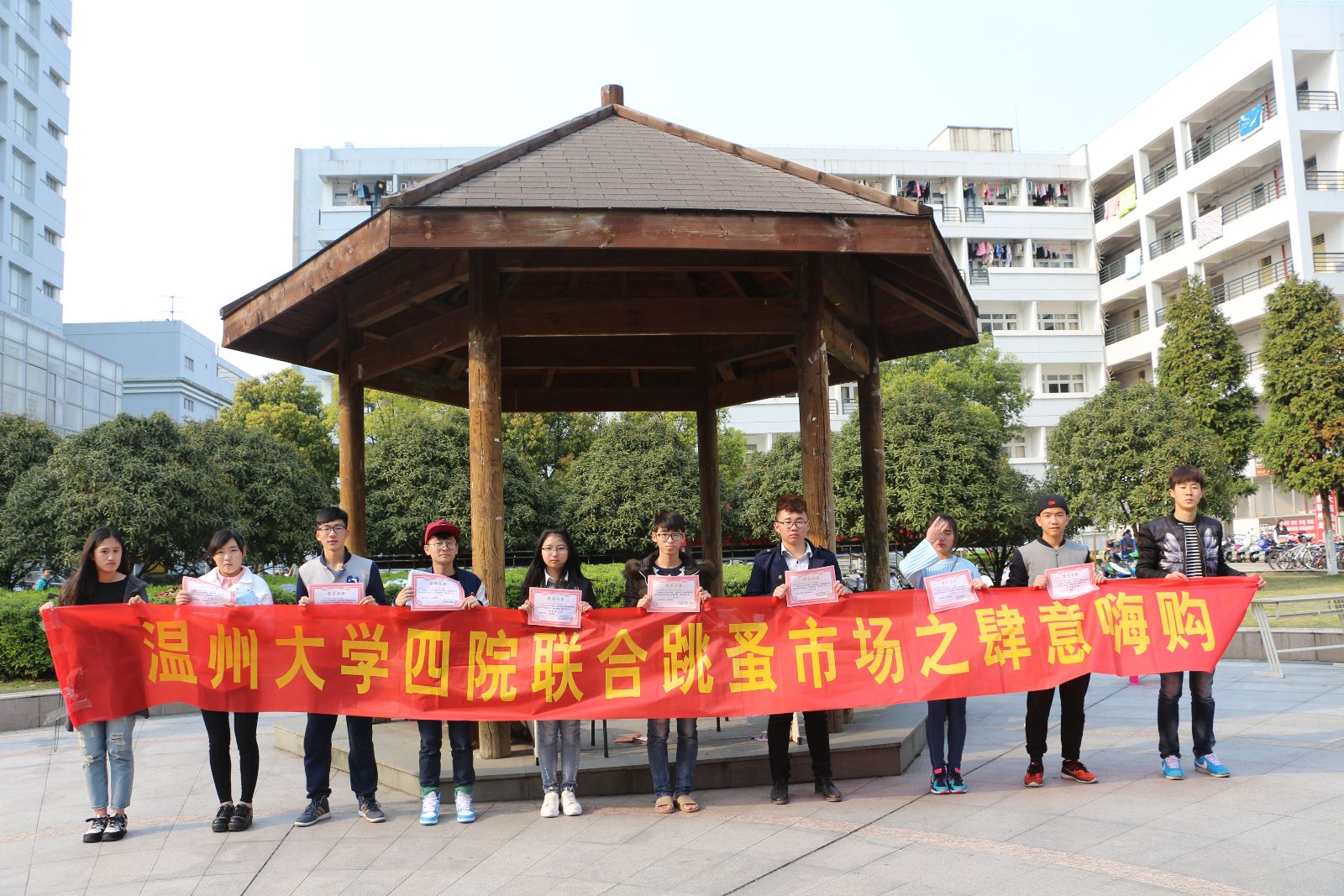 2016年3月26日天气晴朗,阳光普照。伴随着清脆的鸟鸣声,由温州大学商学院主办、由教师教育学院、法政学院和体育学院亲情加盟的四院联合跳蚤市场在C区凉亭拉开帷幕。