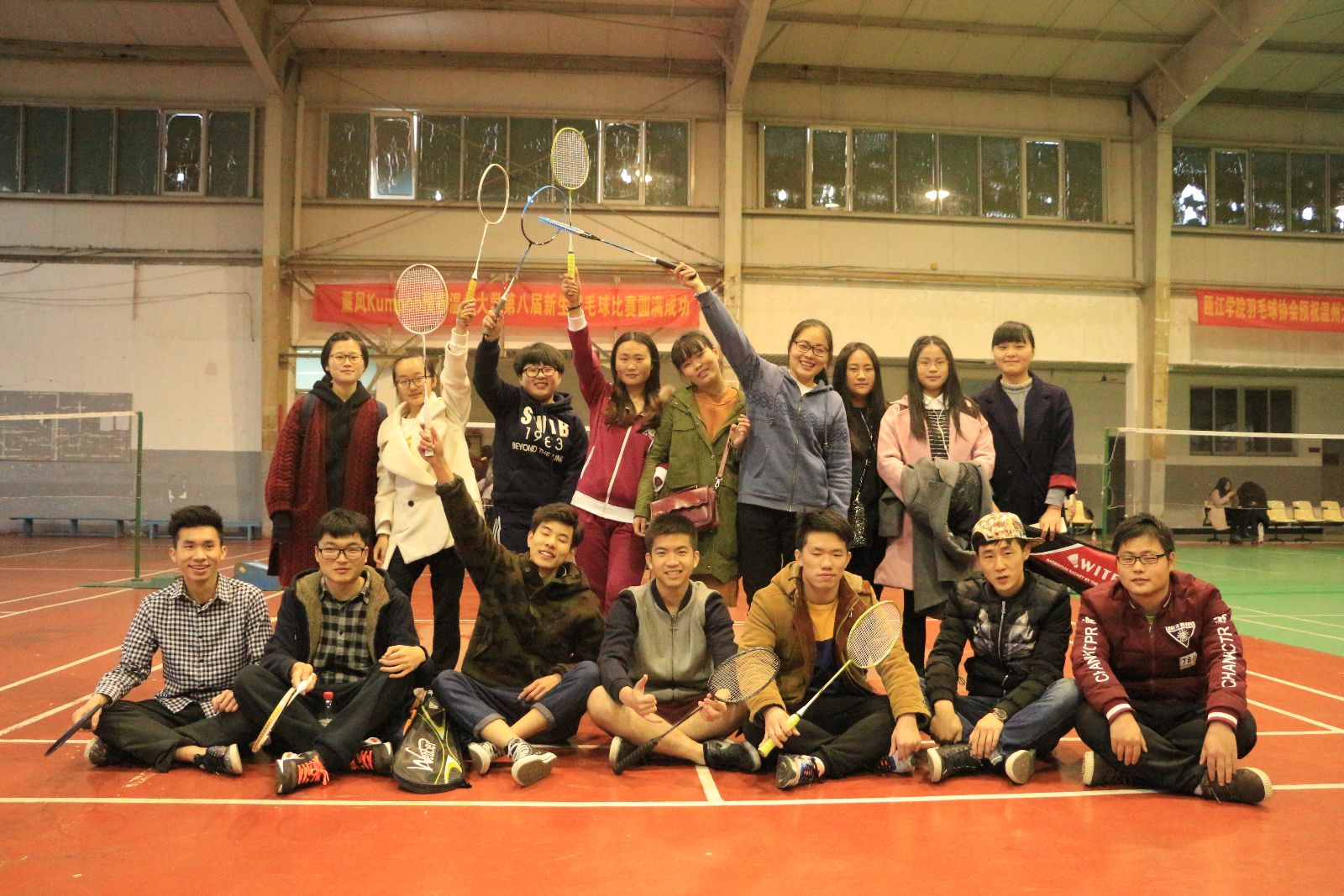 下午2:30,比赛准时开始,这是“高手与高手”间的较量。现场“火味”十足。在15国贸小鲜肉对战13金融班学姐学长的比赛中,大家都拿出了各自的“看家本领”。一点也不敢掉以轻心,前四局比赛以2:2打成平手。最后一局,气氛变得分外紧张,比分追追赶赶,20:20,全场欢呼,进行了加时赛。最后以26:24,15国贸班险中获胜。全场欢呼声不断。13经济对14国贸班的比赛也以3:1结束。13经济与15国贸开始了一、二名的角逐。“姜还是老的辣”,最终13经济以连胜三局取得了第一名的荣誉。后两局比赛两只队伍还进行了友好的友谊赛。一直到最后五点钟,比赛才落下了帷幕。最终比赛以冠军13经济,亚军15国贸班,季军13金融画上了圆满的句号。