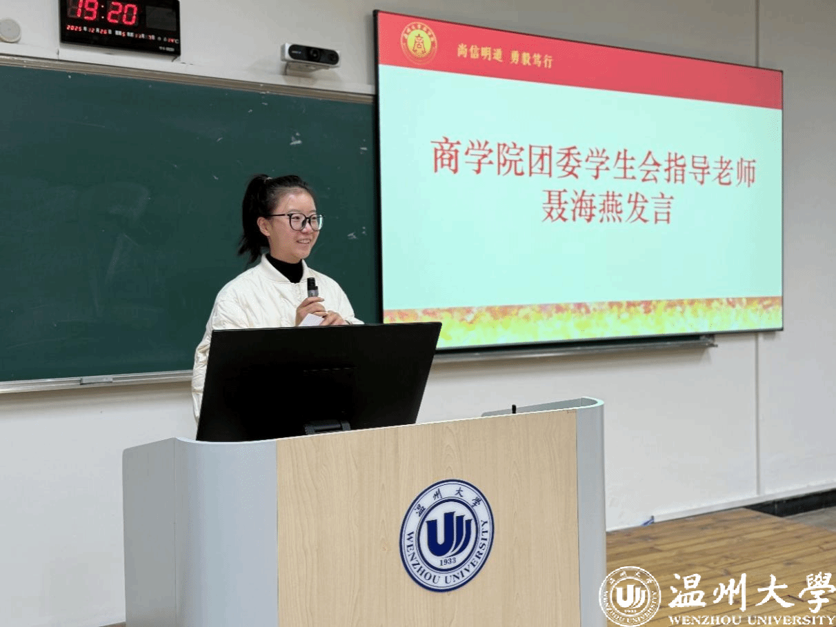 2025年12月26日18时,温州大学商学院2025-2026学年第一学期团委学生会期末总结大会在北2-401教室召开。学院辅导员周洁文、聂海燕、金楣婷以及团委学生会全体成员出席本次会议,共同回顾本学期工作历程,凝练经验成果,剖析问题不足,明确未来发展方向。
