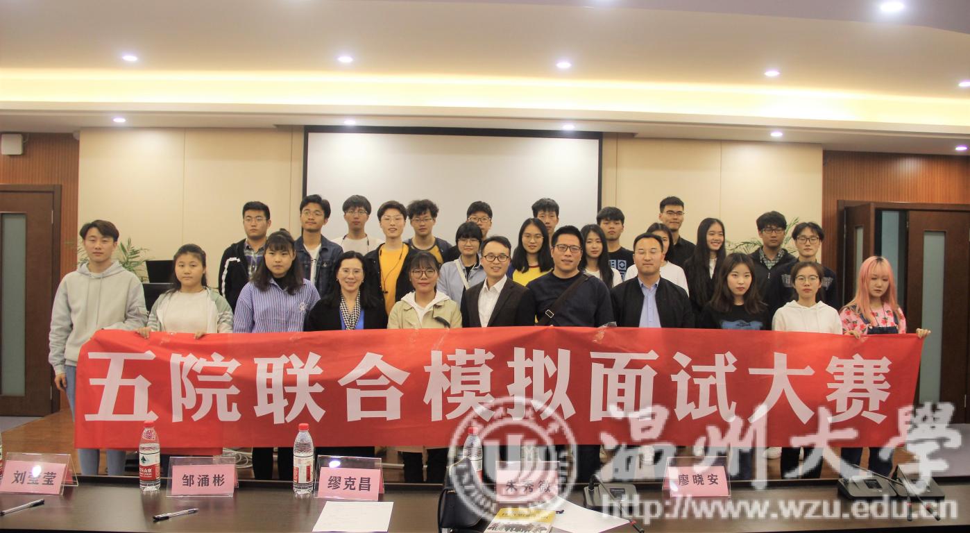 4月18日,温州大学五院联合模拟面试大赛复赛在机电学院A309教室顺利举行。本次比赛由商学院、数电学院、化材学院、机电学院和建工学院联合举办。本次面试大赛的目的是模拟人才市场竞争,指导学生做好职业规划,进一步提高我校学生的职业素质和求职能力。