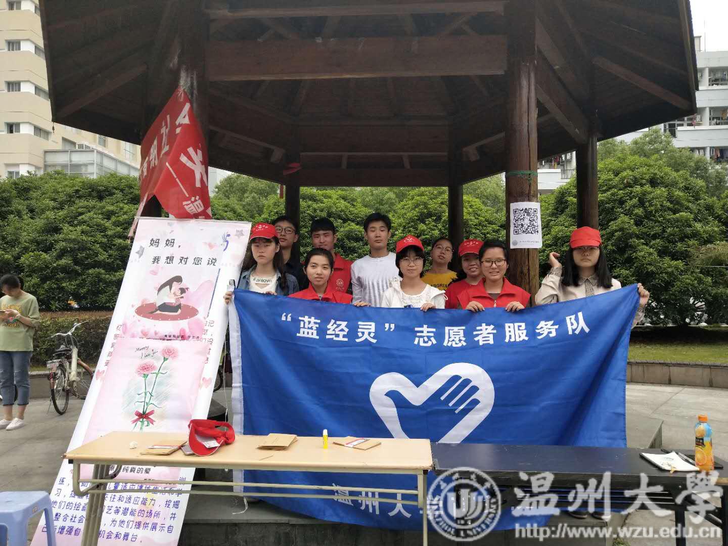 温大商院蓝经灵志愿者于5月12日带队来到c区凉亭,开展“妈妈我想对您说”志愿服务活动,本次活动旨在帮助学生与家人建立良好的关系,在母亲节当天为妈妈送去一份最古朴,最真切的祝福。