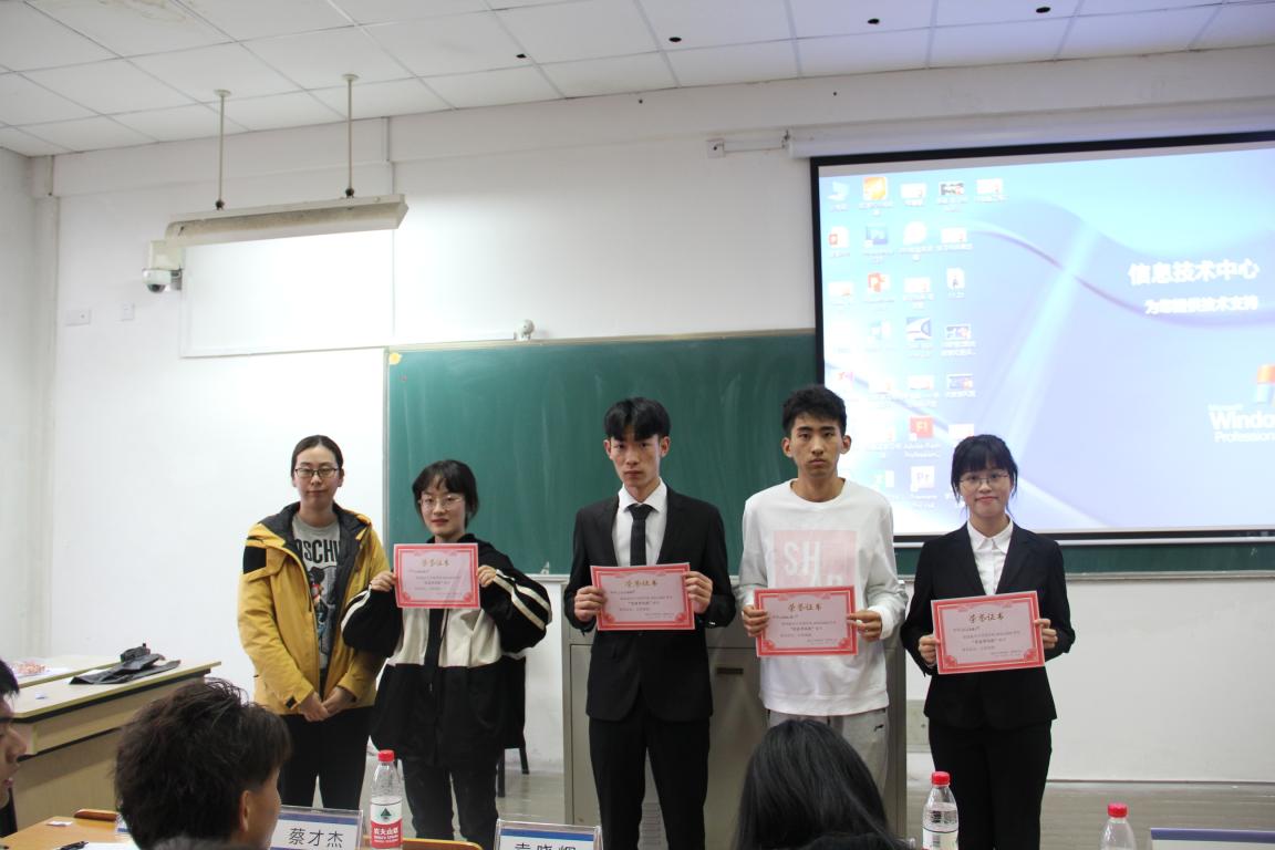 评比活动的第二环节是优良学风班的评比。每个班级的代表依次上台展现自己班级的学习成绩情况、活动组织实施情况等,体现出温大商院各个班级的优良学风。