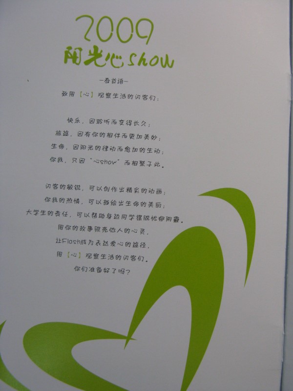 参赛作品开头5秒须以醒目文字形式注明“‘阳光心show’——浙江省大学生Flash创作大赛”的字样。