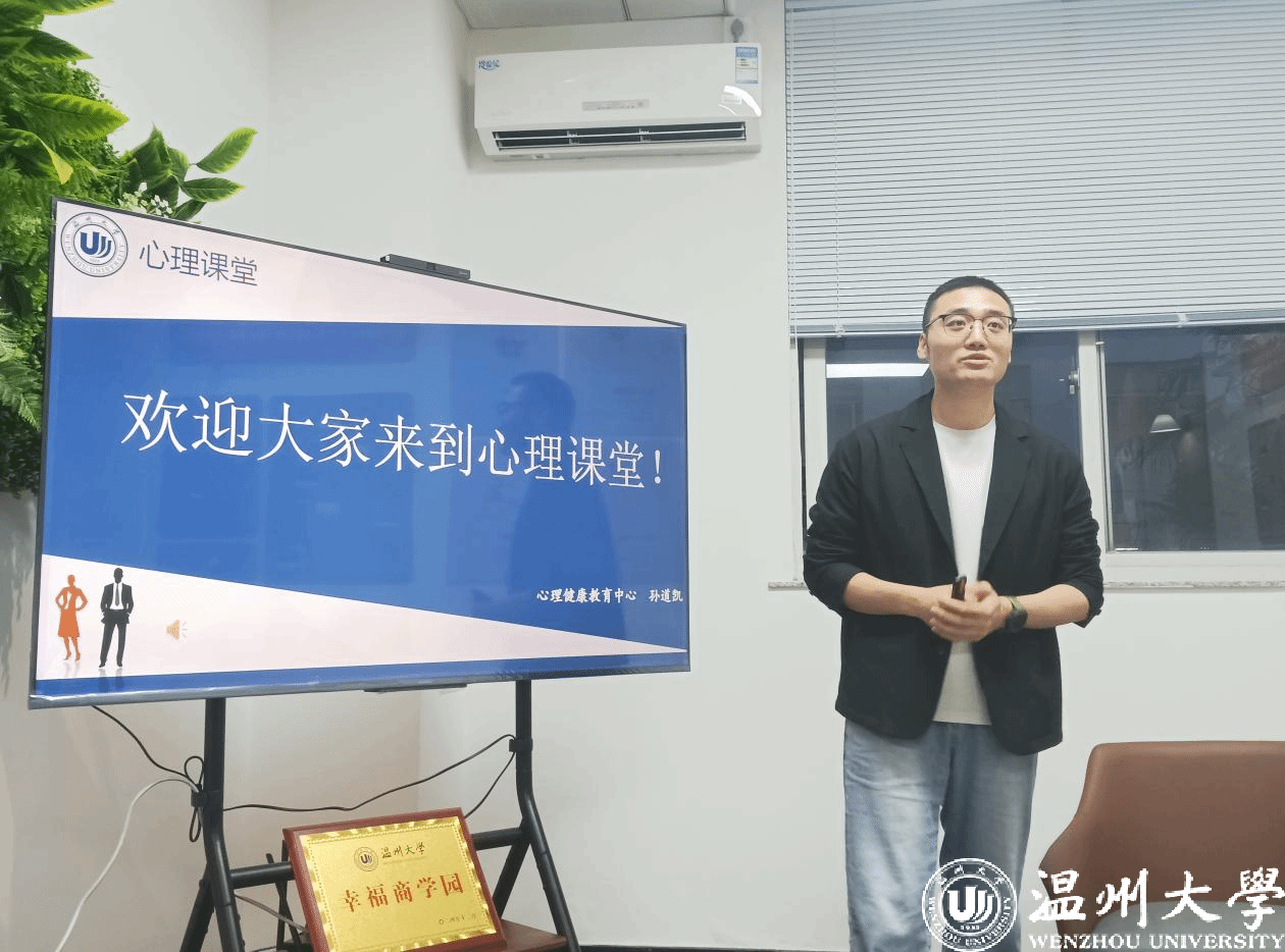 2025年5月7日晚上18:30,温州大学商学院团委学生会素拓心理部在商学院221幸福商学园开展了《找寻未来的自己》幸福课,特邀温州大学心理健康教育中心专职心理咨询师、国家三级心理咨询师孙道凯老师主讲, 致力于引导同学们探索适合自己的发展道路,锚定个人目标。