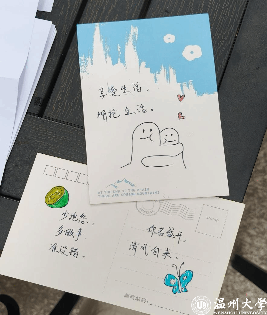 “赞美明信片传递”环节中,同学们两人或多人组队,在明信片上写下对彼此的赞美,可以是值得欣赏的优点,也可以是难忘的回忆。书写完成后,大家互换明信片并合影留念,一张张笑脸定格了青春的美好瞬间。