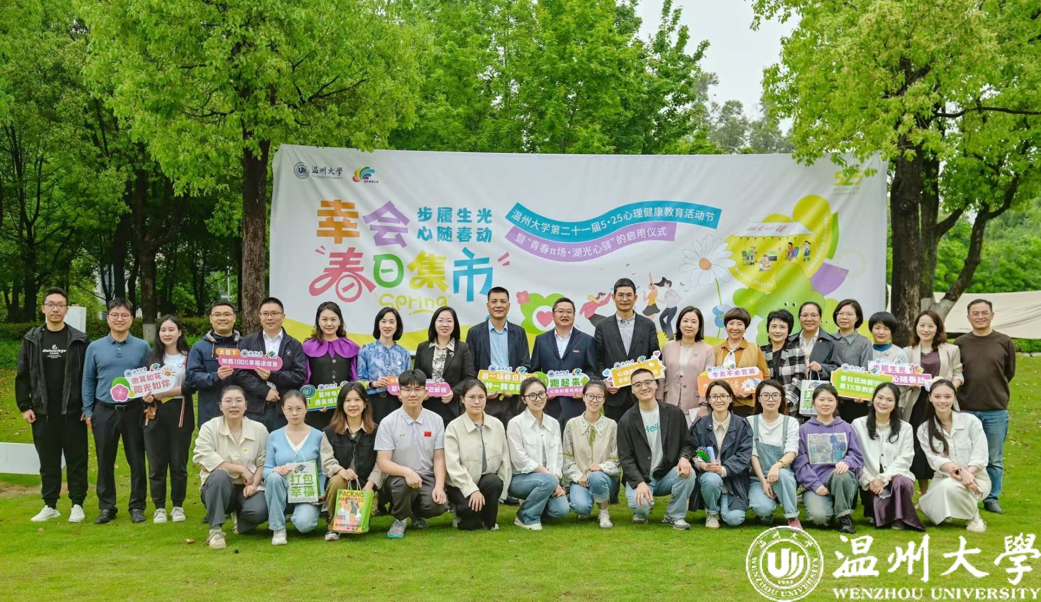 为打造开放自由的情感表达平台,营造积极健康的校园心理氛围,2025年4月23日15:00,温州大学第二十一届5·25心理健康教育活动节开幕式在南校区明心湖旁的“HELLO WZU”大草坪成功举行。本次活动由温州大学主办,致力于打破情感交流的藩篱,让学生能自由抒发情绪,进一步增强心理健康意识。