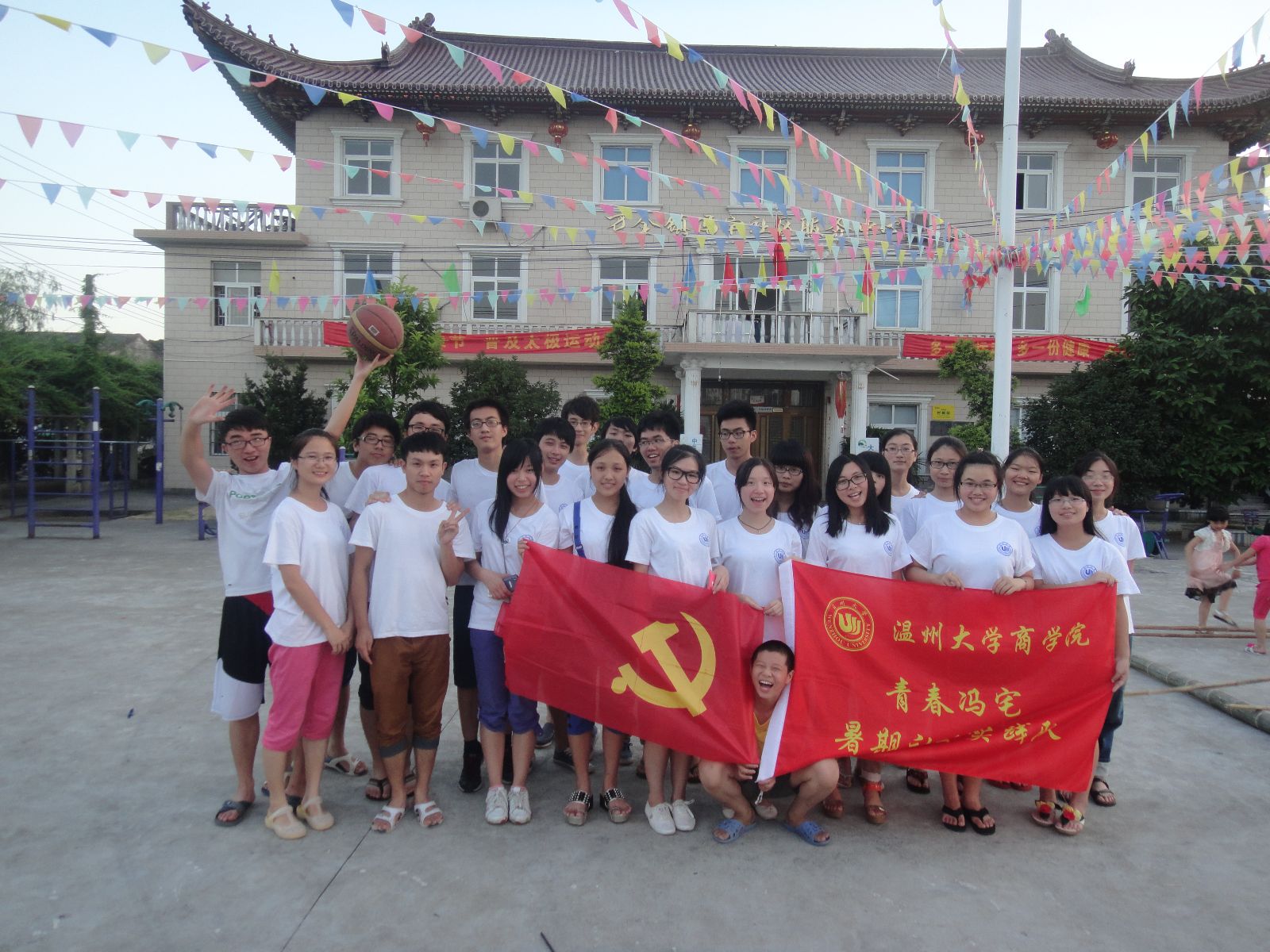 2013年7月12日,已经是实践的第七天了,温州大学商学院“青春冯宅”暑期社会实践队穿着白色的队服,以朝气蓬勃的姿态继续投入到支教实践工作之中。