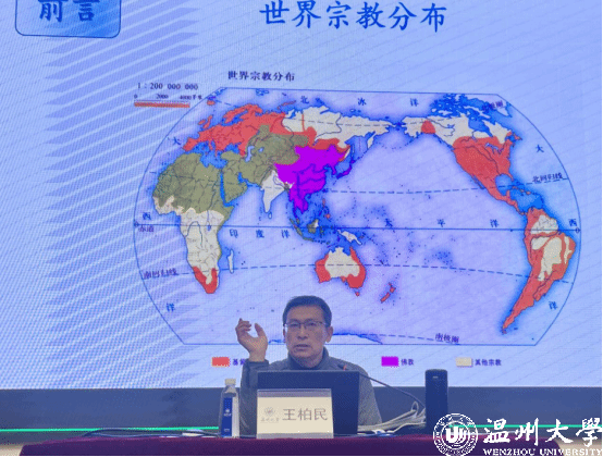 讲座伊始,王柏民老师以世界宗教和中国宗教发展趋势为切入点,通过马克思主义世界观和宗教观,马克思主义宗教观的中国化,新时代党的宗教工作理论和制度三个方面展开叙述,全面深化了大家对马克思主义宗教观的正确认识。除此之外,老师还引用《关于我国社会主义时期宗教问题的基本观点和基本政策》这一文献,表明我们要尊重和保护宗教信仰自由,用马克思主义立场、观点、方法研究宗教问题。