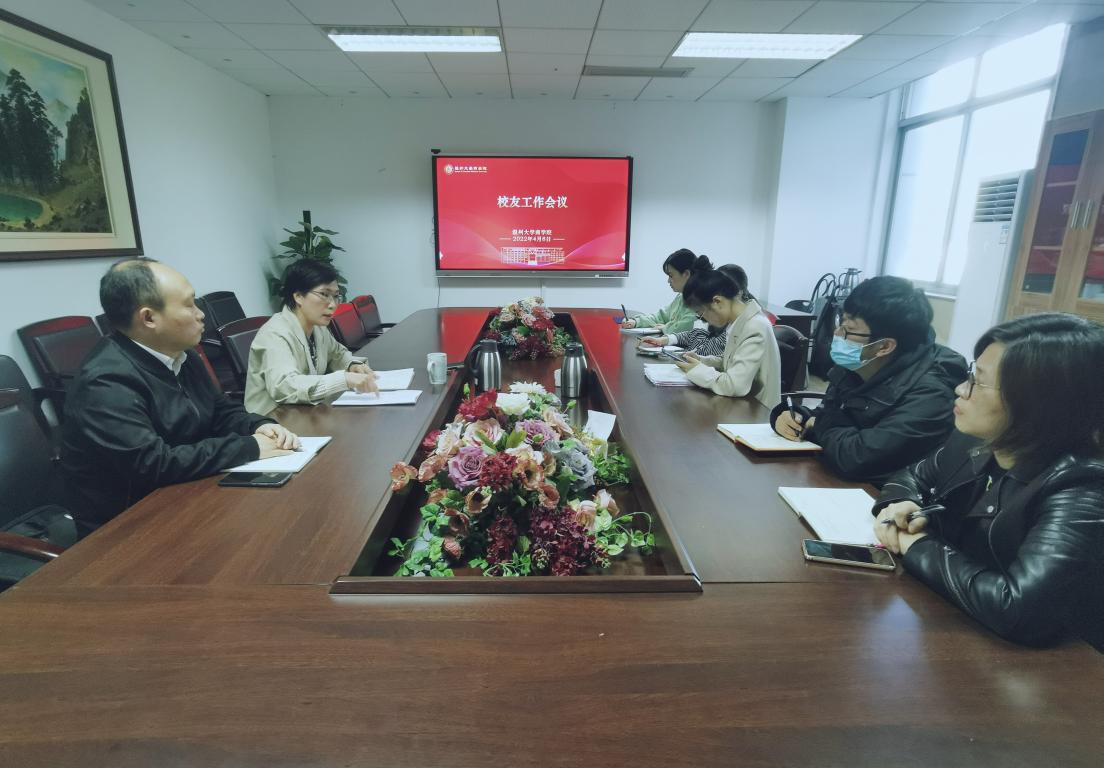 会议讨论了温州大学商学院“谭伟鸿奖教金”设立相关事宜、校友库数据完善、校友沙龙、校友奖学金发放、第七届融商杯及温州大学办学89周年系列活动等事宜。郑彩莲书记针对相关事宜做出部署。