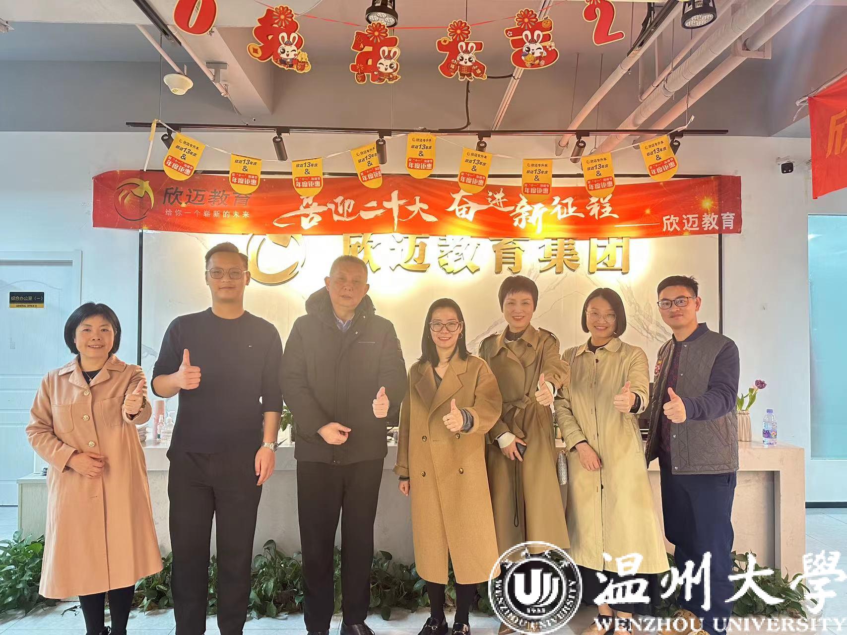 为加强学院与校友之间的联系,增进友谊,加强合作,助力校友和学院事业共赢发展。3月8日下午,温州大学商学院院长胡振华、党委书记李密、副院长陈文芝、以及工商管理系主任陈敏、学院办公室主任张素琴一行5人前往工商系优秀校友陈东海先生创办的杭州欣迈教育集团公司走访调研,开展“访企拓岗促就业”工作。
