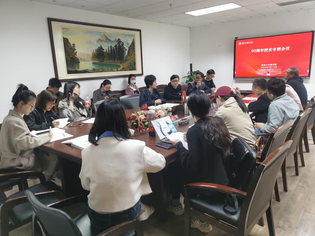 2023年4月12日,商学院在北校信息楼A222会议室召开90周年校庆工作专班会议。会议由学院党委书记李密主持,各科室负责人、各系系主任与支部书记及相关工作人员参加。