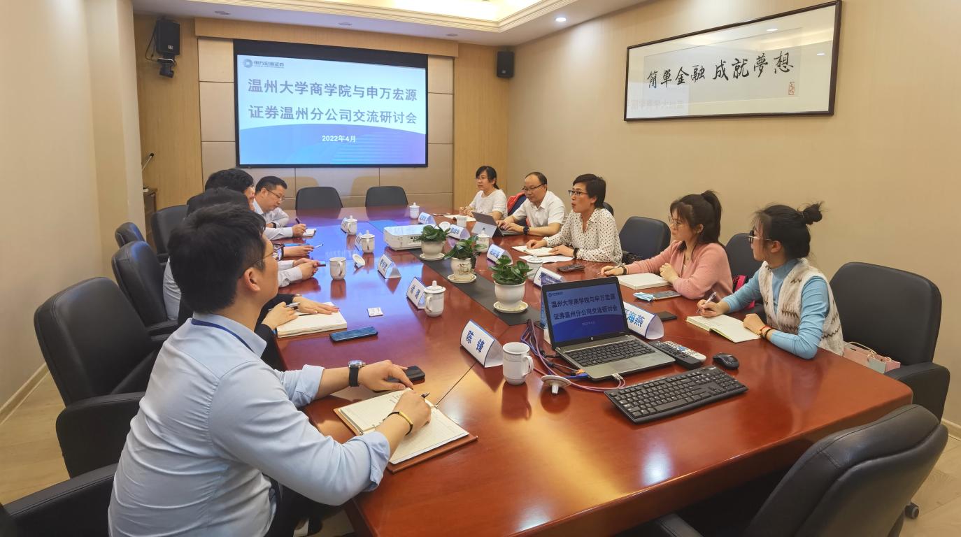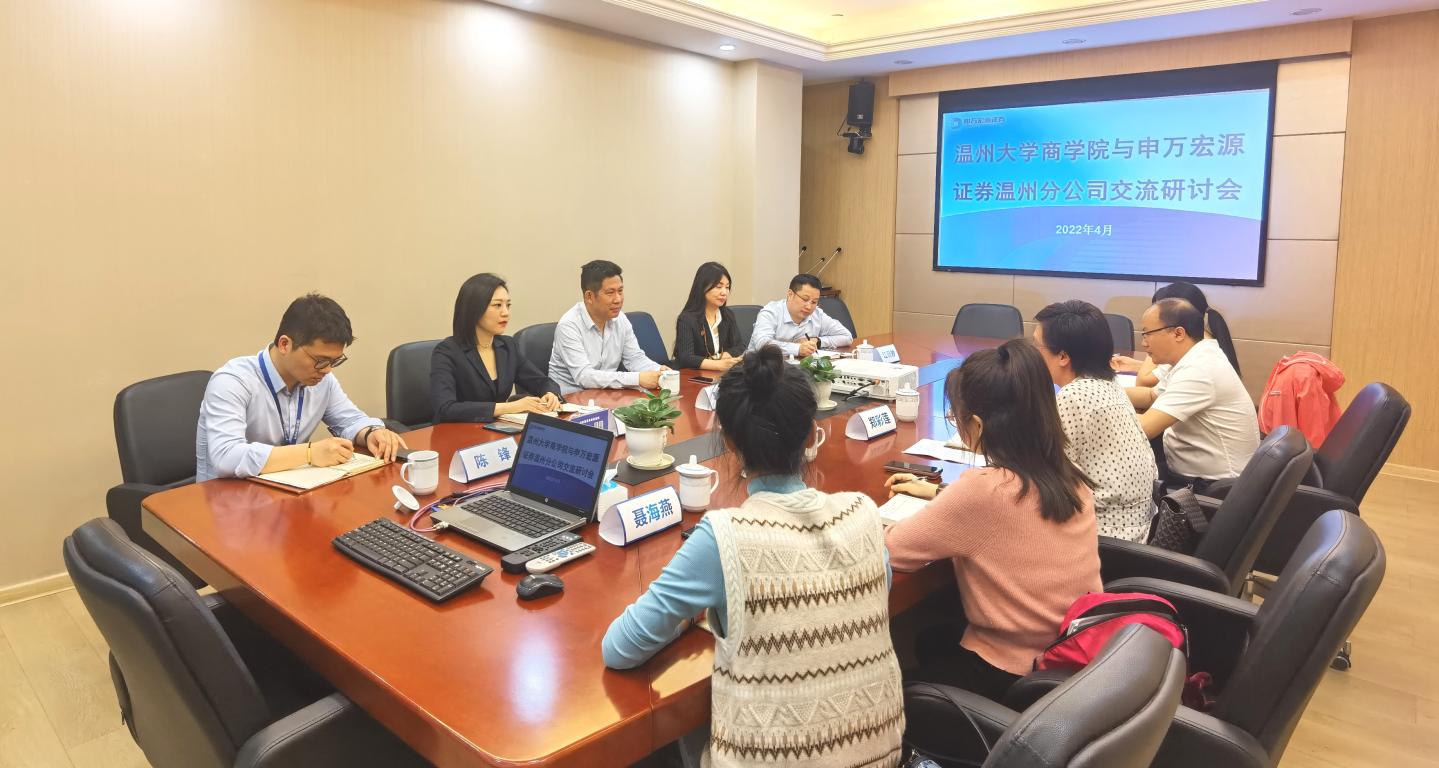 2022年4月12日,我院党委书记郑彩莲、教工第一党支部(金融系)支部书记周建华、金融工程专业教师王芳芳、熊礼慧、学院党务秘书聂海燕一行赴申万宏源证券温州分公司开展交流研讨会。会上,双方就如何深化银校共建、拓展人才培养平台等问题开展深度交流。