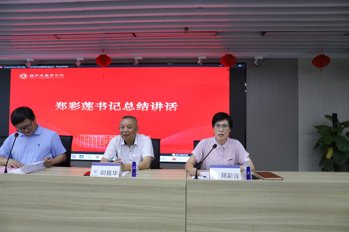 最后,郑彩莲书记指出“365奖学金”的设立充分体现了学院践行人才培养模式改革的目标,是校友、企业、学校对拔尖人才的重视。她对王仲辉校友进行了新的介绍,感谢王仲辉校友对母校的情怀。郑书记一方面祝贺获奖同学,同时也对同学们提出了两点期望:一是希望同学们能够秉承“求学问是、敢问人先”的校训精神、“尚信明道、勇毅笃行”的院训精神,用青春的肩膀担负起祖国建设的责任。二是希望同学们心怀感恩之心,学习校友身上闪现的珍贵品质,心怀天下,商行天下,优秀的企业家也往往都是慈善家,他们身上的特质精神不是一蹴而就的,而是长期修炼而成的,期望同学们继续努力,做优秀的商院学子。