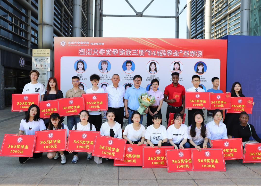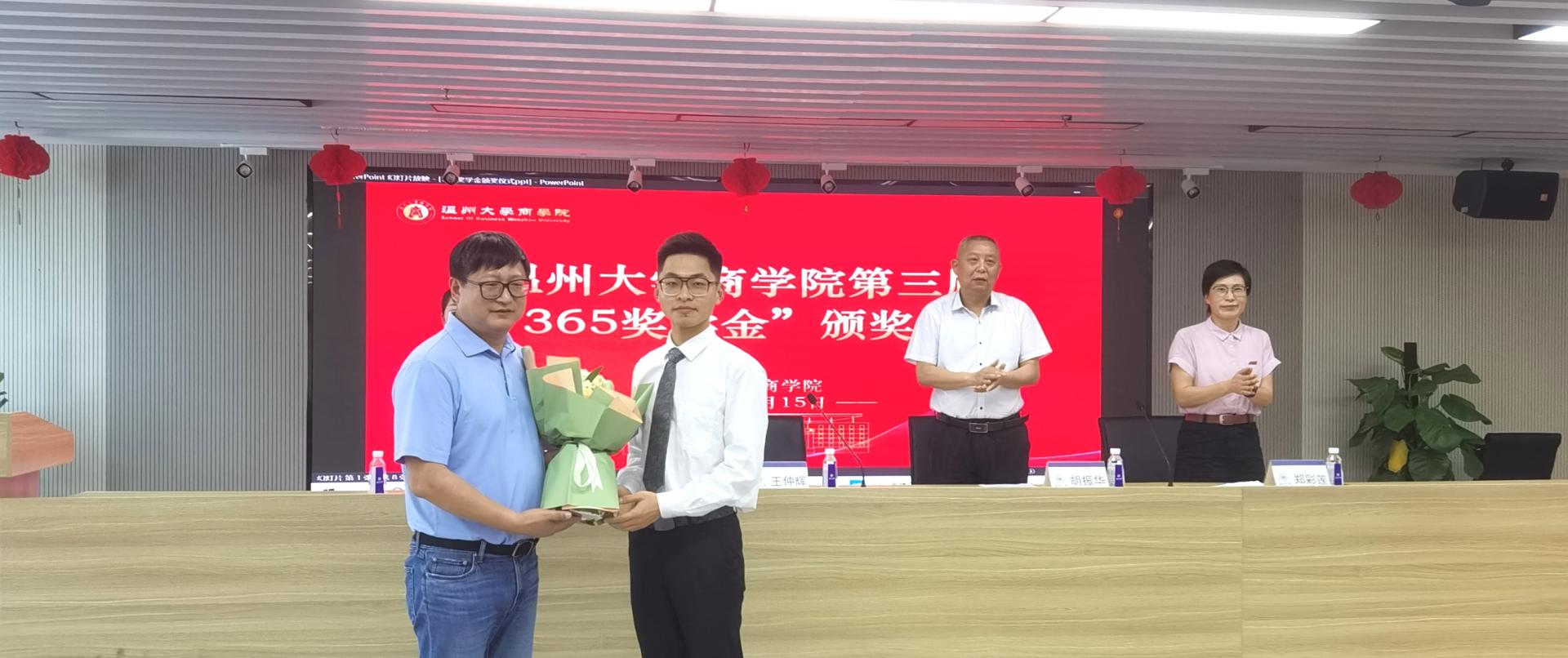 商学院胡振华院长宣读了“365奖学金”获奖名单,共18名同学获奖。随后,王仲辉校友及院领导逐一为获奖同学进行颁奖。