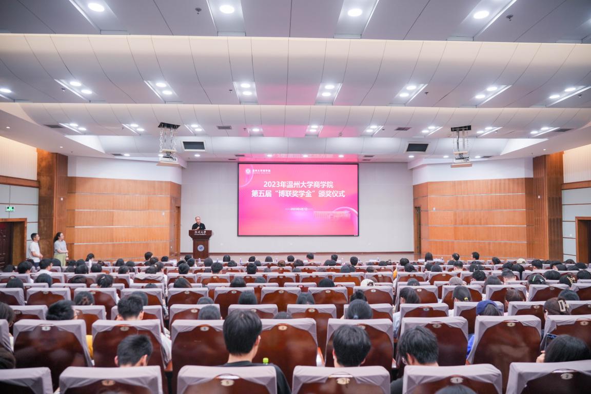 2023年6月7日下午,商学院在北校信息楼报告厅隆重举行了第五届"博联奖学金"奖学金颁奖仪式。商学院优秀校友钱旦初、学院党委书记李密、党委副书记唐华、各系主任、辅导员、教师代表以及2022级全体本科生出席了本次活动,活动由学院党委副书记唐华主持。