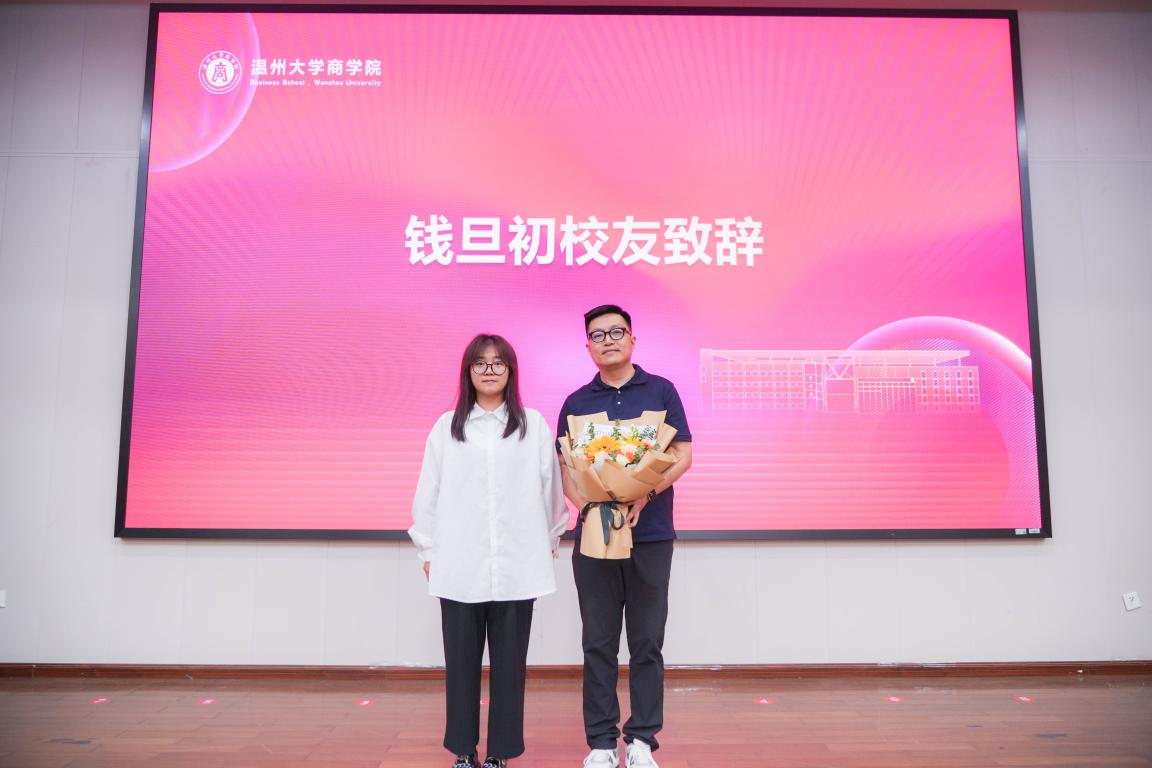 “校友榜样、前行力量”感谢90级钱旦初校友、94级徐开晴校友捐款设立的“博联奖学金”,他们的举动正体现了学校多年来人才培养目标,也架起了校友和学院连接的桥梁,是学校和企业互动的力量。希望商院学子学习优秀校友的经验,能心怀理想,志存高远,把个人理想和国家理想结合起来,用自己的肩膀扛起国家建设的大任,怀着感恩之心走向未来,让社会会变得更加温暖。