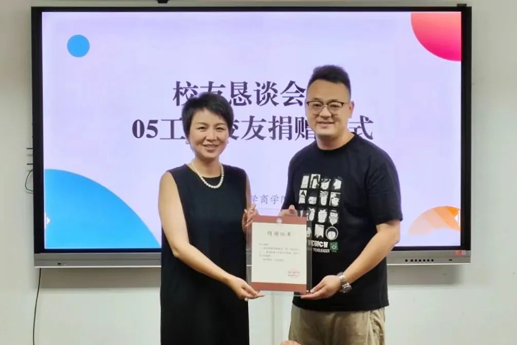 最后,吕飞安校友代表05工商班级向学院捐赠价值10万元的智能锁具,李密书记向吕飞安颁发捐赠证书。李密书记指出,温州大学商学院工商管理系一直致力于培养具有杰出管理才能、战略眼光的高素质工商管理人才,吕飞安和薛壹磊校友是我们工商学生的杰出榜样,也是温州大学商学院的骄傲。她也对吕飞安和薛壹磊校友对商学院的支持表示感谢,希望双方的进一步合作能够取得更加丰硕的成果,为推动我院的发展和提高学生的综合素质做出更大的贡献。