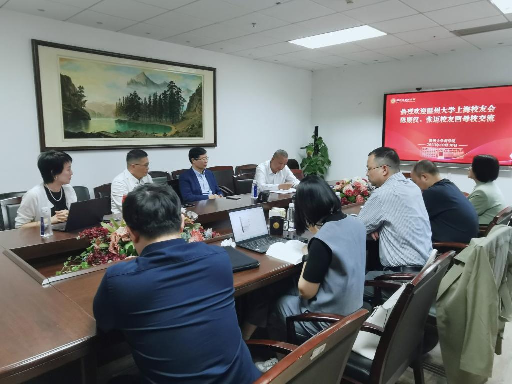 2023年10月30日,温州大学上海校友会副会长兼秘书长陈康汉、副会长张迈校友回母校交流,就上海校友会与对接学院——商学院进行深入座谈交流。商学院领导班子及商学院校友会、办公室参加座谈交流。会议由学院党委书记李密主持。