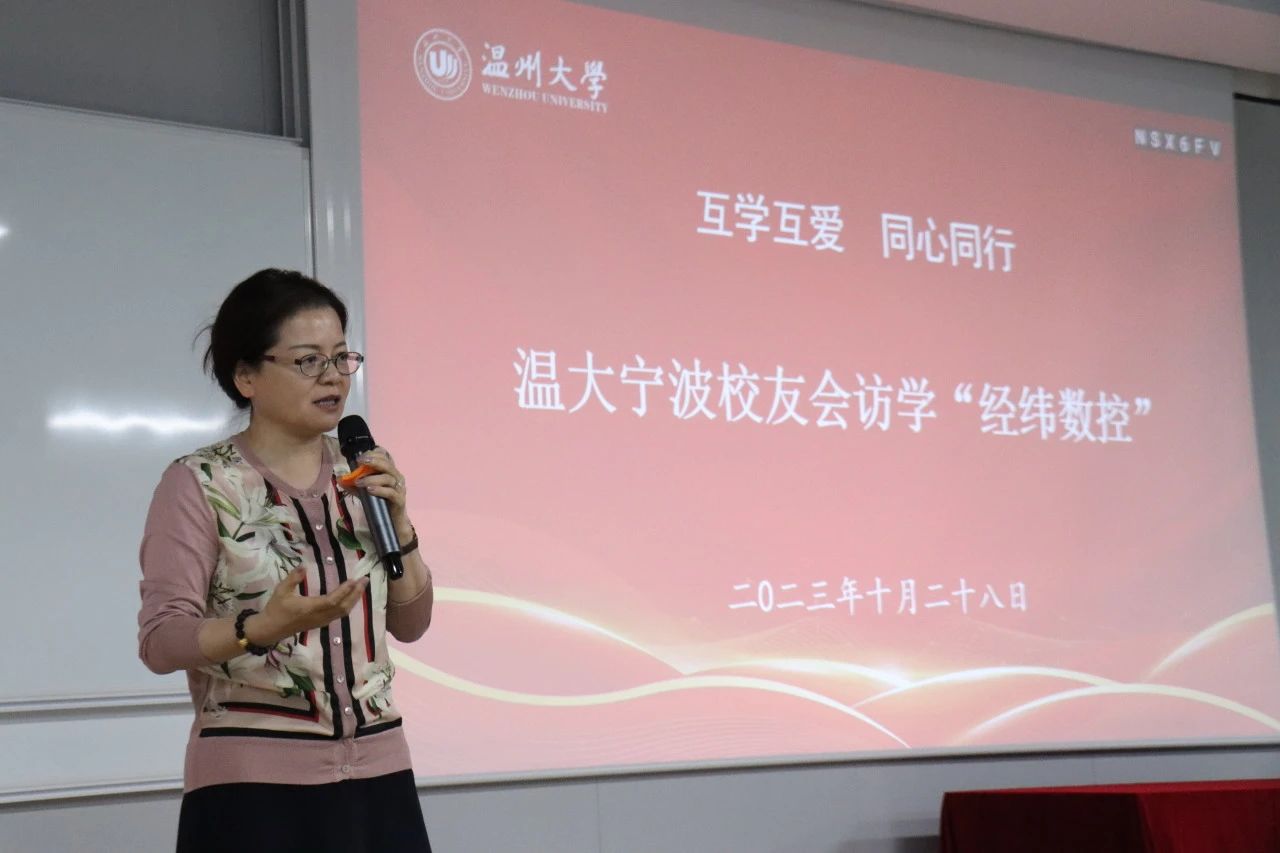 讲座之后,林立雪校友和大家分享了自己就业、创业的心路历程。她大学毕业来到宁波就业,到后来自己创业,一直牢记“求学问是、敢为人先”的校训,学字当头,从温大到清华,到中欧商学院EMBA,再到现在在读的清华大学五道口金融学院,自己一直在学习和“充电”的路上。“立雪”,来自于成语“程门立雪”的典故。她勉励大家要不断的学习,求学就是“求真”,“求真”才能在“创新共赢”中立于不败之地。她带领大家参观了“经纬数控”的展厅,大家系统地了解了“经纬数控”的创业历程。这家企业,是专业从事CAD/CAM及工程数据库开发应用、集产品研发制造、销售和服务为一体的高科技企业,是国内最早投身于数控平板切割行业的企业,经过20年的苦心经营,公司一直以领先技术处于各行业转型发展的最前沿,获得过浙江省“隐形冠军“培育企业、国家高新技术企业、宁波市制造业单项冠军企业、宁波市专精特新小巨人企业、创业明星企业、宁波市软件十强企业、宁波市重点软件企业、国家高新区创新示范企业、高新区创新型高成长企业等荣誉。经纬是国内柔性裁切行业的开创者和领军者,技术创新实力强劲。