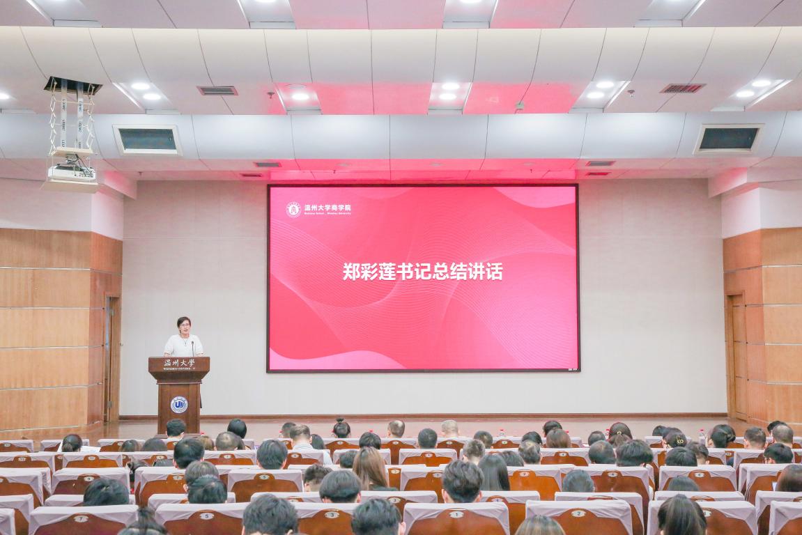 最后,郑彩莲书记作三点总结讲话。第一,感谢王仲辉校友对母校的情怀。郑书记对王仲辉校友出资成立奖学金并多年来支持和关心学院发展表示衷心感谢。第二,寄语获奖同学在青春赛道上奔跑出最好成绩,让青春之我、创造之我继续发光发热。她也希望同学们能一如既往地刻苦学习,把自己培养成具有社会责任感的人。第三,期望所有获奖学生心怀感恩之心,传播优秀校友带来的正能量,不辜负学校的培育和期许。
