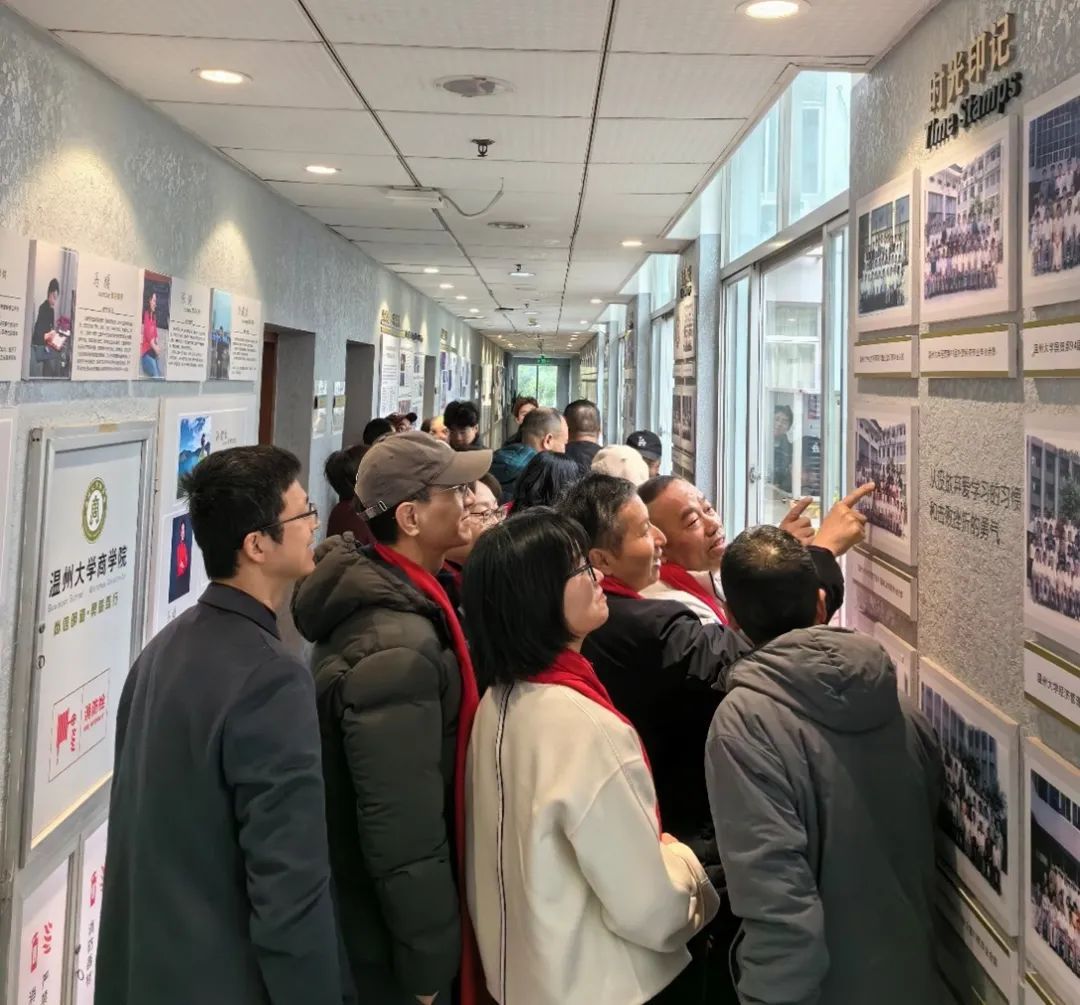 随后,迈入温州大学商学院,校友们在唐华副书记的带领下,探索着商学院的辉煌。看着长长的走廊,校友们心潮澎湃,不禁投入到充满记忆的往昔时光中。
