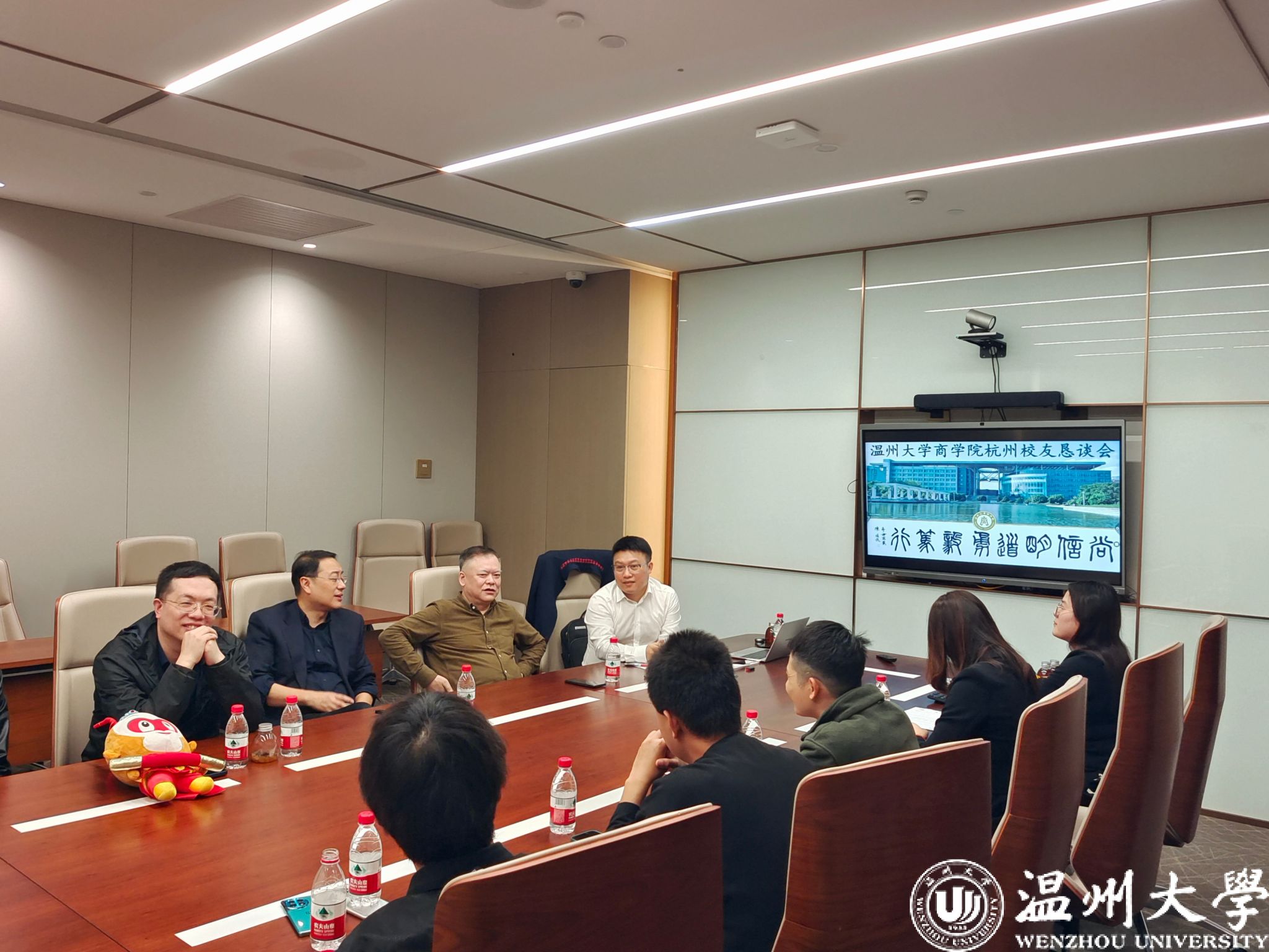 10月26日下午,温州大学商学院杭州校友恳谈会在杭州钱江新城尊宝大厦民生银行二楼会议室举行。