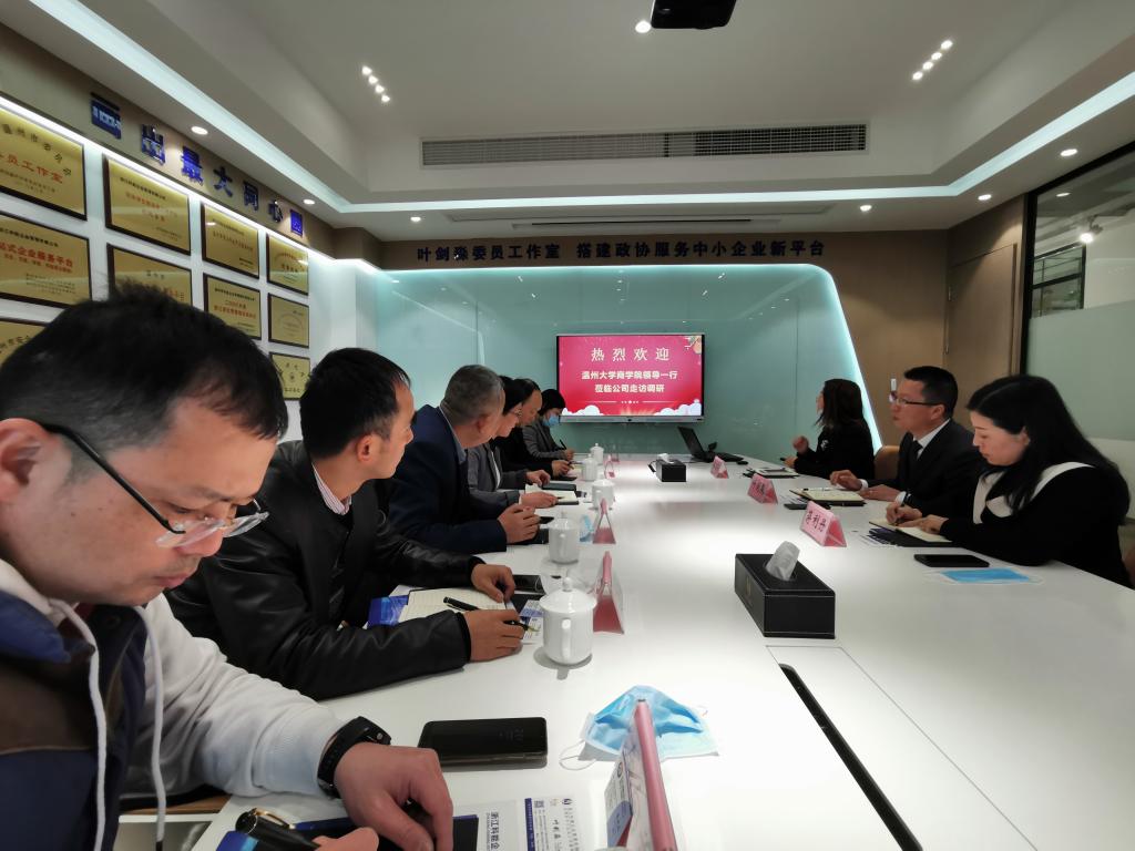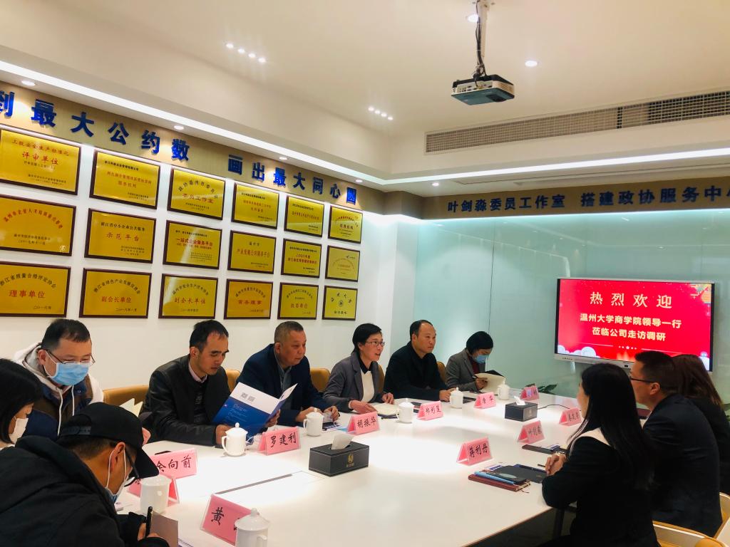 3月31日下午,继上周商学院专家组赴中国·超达汽车配件有限公司、浙江伟明环保有限公司进行考察后调研团队再次深入企业,院长胡振华、党委书记郑彩莲、副院长罗建利、副院长余向前、副书记唐华、浙江省特色专业(一流专业)国际经济与贸易负责人林俐教授、商学院校友会秘书长张素琴等一行前往浙江科能企业管理有限公司拜访公司董事暨优秀校友企业家、温州大学商学院校友会副会长叶剑淼,专门调研企业复工复产问题、为企业经营出谋划策,为社会贡献高校智慧力量。