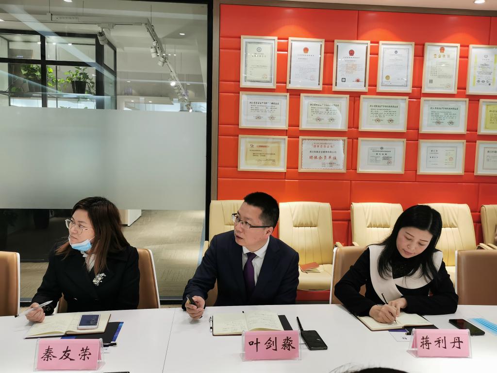 会上,叶剑淼总经理向大家介绍了浙江科能企业管理有限公司二十年的发展历程,围绕认证标准、绿色节能、环保咨询、安全生产、科技信息五大核心业务分别展开论述,提出了一种新型的商业模式,即新制造一站式服务,为企业提供“多快好省”的充分服务,针对企业不同时期不同阶段提供整体解决方案。当提及疫情对企业的影响时,叶经理表示,目前企业复工率达到100%,由于是属于商业服务行业,并未受到影响,全体员工在正月初八就已经全部实现线上办公,而且还特别针对疫情期间发布了一本《应对疫情惠企政策汇编》电子书,为推动中小型企业复工复产获取政策支持提供宝贵指南。作为92级校友,叶剑淼总经理希望能够跟母校在各个领域进行全面合作。接着,双方进行充分交谈,胡院长就毕业生实习就业、企业培训、外聘兼职教授、联合科研等项目提出“多方面、多途径、多角度”进行深入合作,表示商学院立足于温州地方经济发展,加强与企业的沟通,建立全方位战略合作关系,细化互助扶持政策,打造成果转化品牌和人才培养高地。