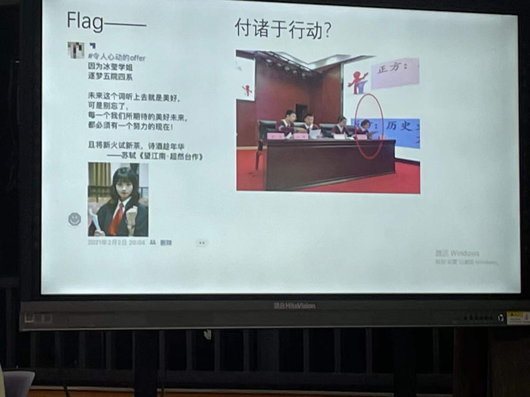 朱启鑫老师对梦想有着生动形象的描绘,每位同学都如一颗种子,抽枝发芽之后的模样各有不同,丛林之中万物生长才应该是梦想绽放的样子。“双减自由了,但同学们更应该做到双增,一增对自我与未来的认识,二增对当下与未来的行动。你的未来有无限的可能,People is ok。”朱老师希望同学们能相信自己有足够的资源解决当下与未来的所有困难。