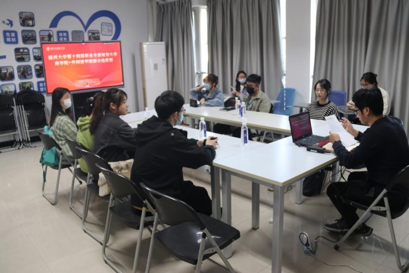 5月8日下午13:00,温州大学第十四届大学生职业生涯规划大赛“商学院、外国语学院联合海选+初赛”于商务中心三楼会议室顺利举行。来自两个学院的共14位选手参加了此次比赛。