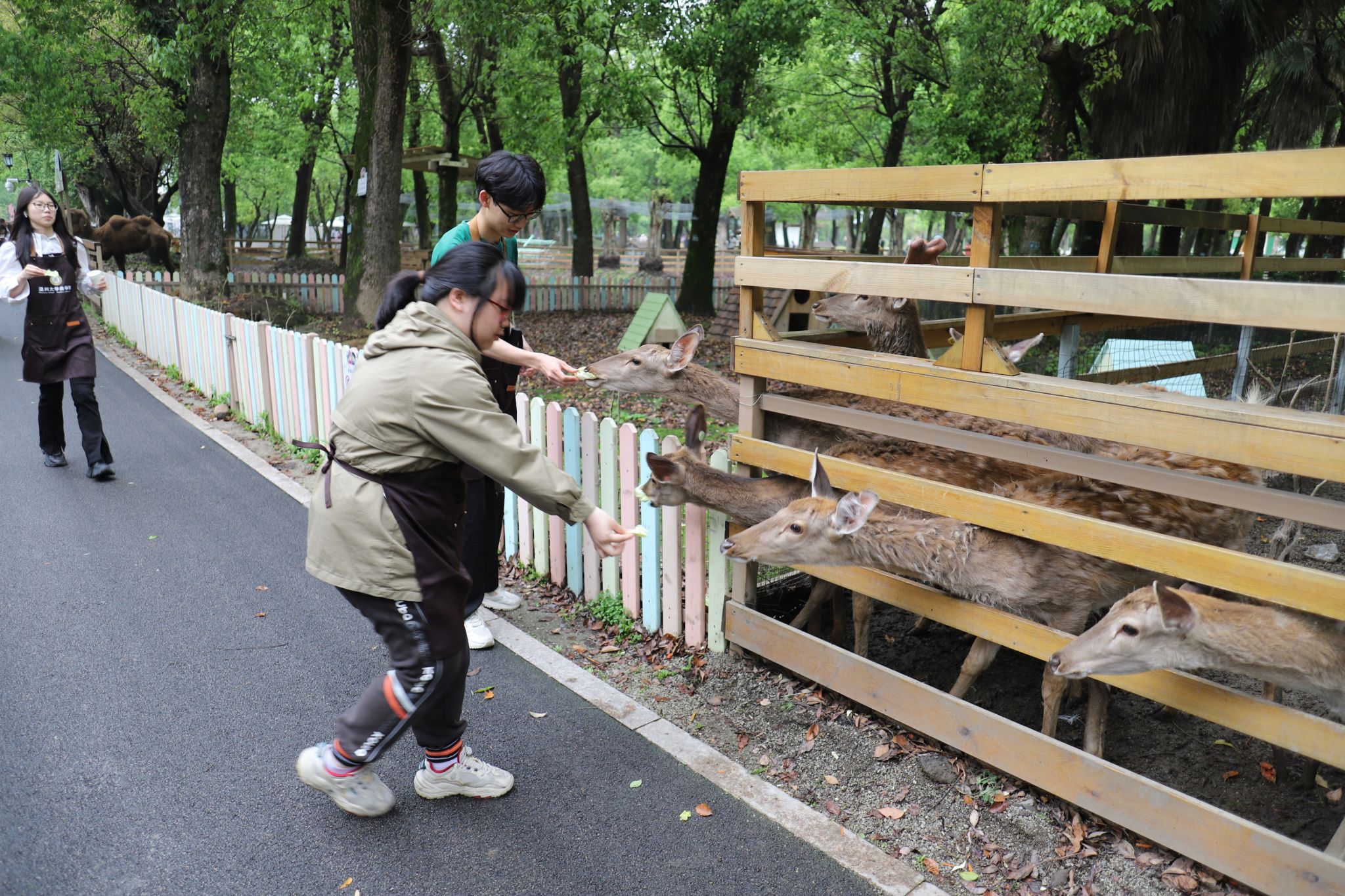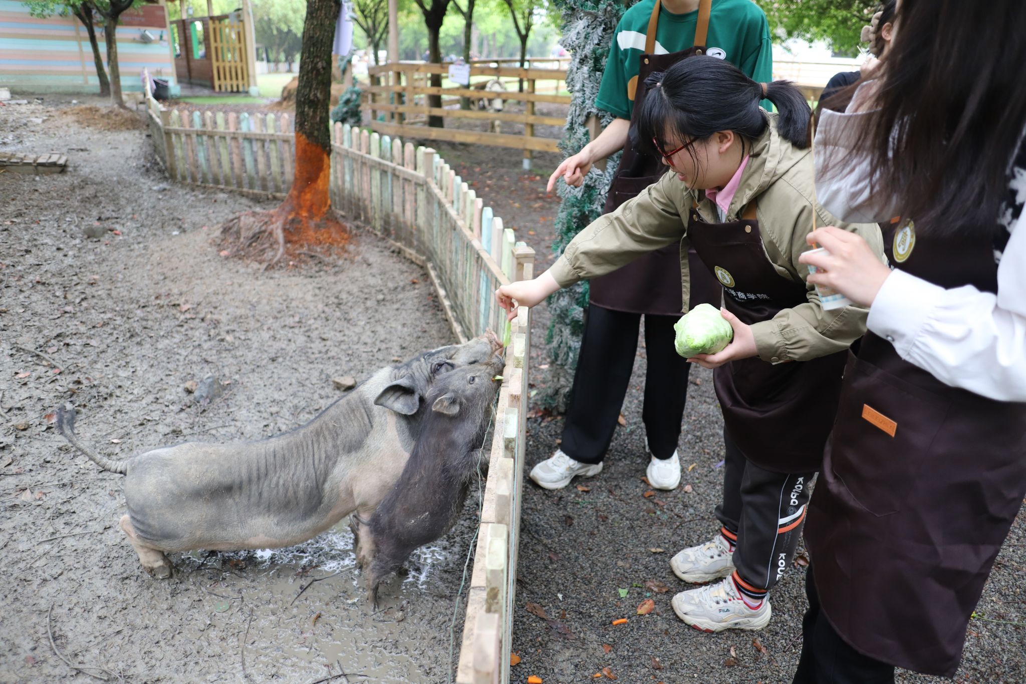 接下来是畜牧喂养环节。同学们来到饲养区,给小猪、小马驹和小鹿喂养准备好的蔬菜。看着农场动物们津津有味地吃着自己准备的食物,同学们感受到了劳动成果的喜悦。