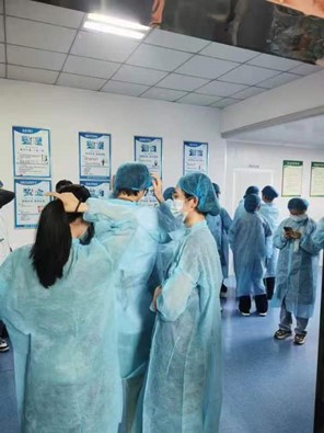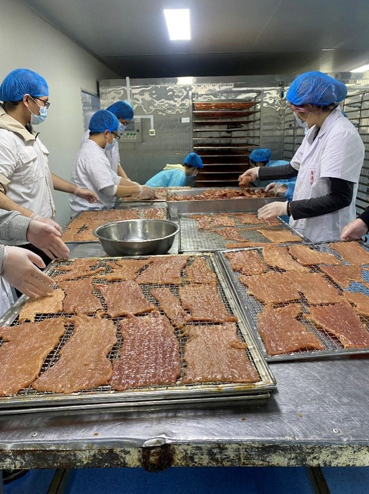 同学们走出了课堂,来到了企业实地进行劳动体验。在工厂中,同学们井然有序的领取属于自己的工厂制服,头套,口罩,按照七步洗手法清洗消毒了双手后按要求佩戴了手套后跟随工作人员来到车间,体验了片猪肉的工序,这对同学们来说是一个不简单的工序但整个环节都充满了浓厚得兴趣和热爱。之后又跟随工作人员的指示,进行了猪肉晾晒和肉铺分装环节,同学们大都两两配合,完美的结束了这一环节。