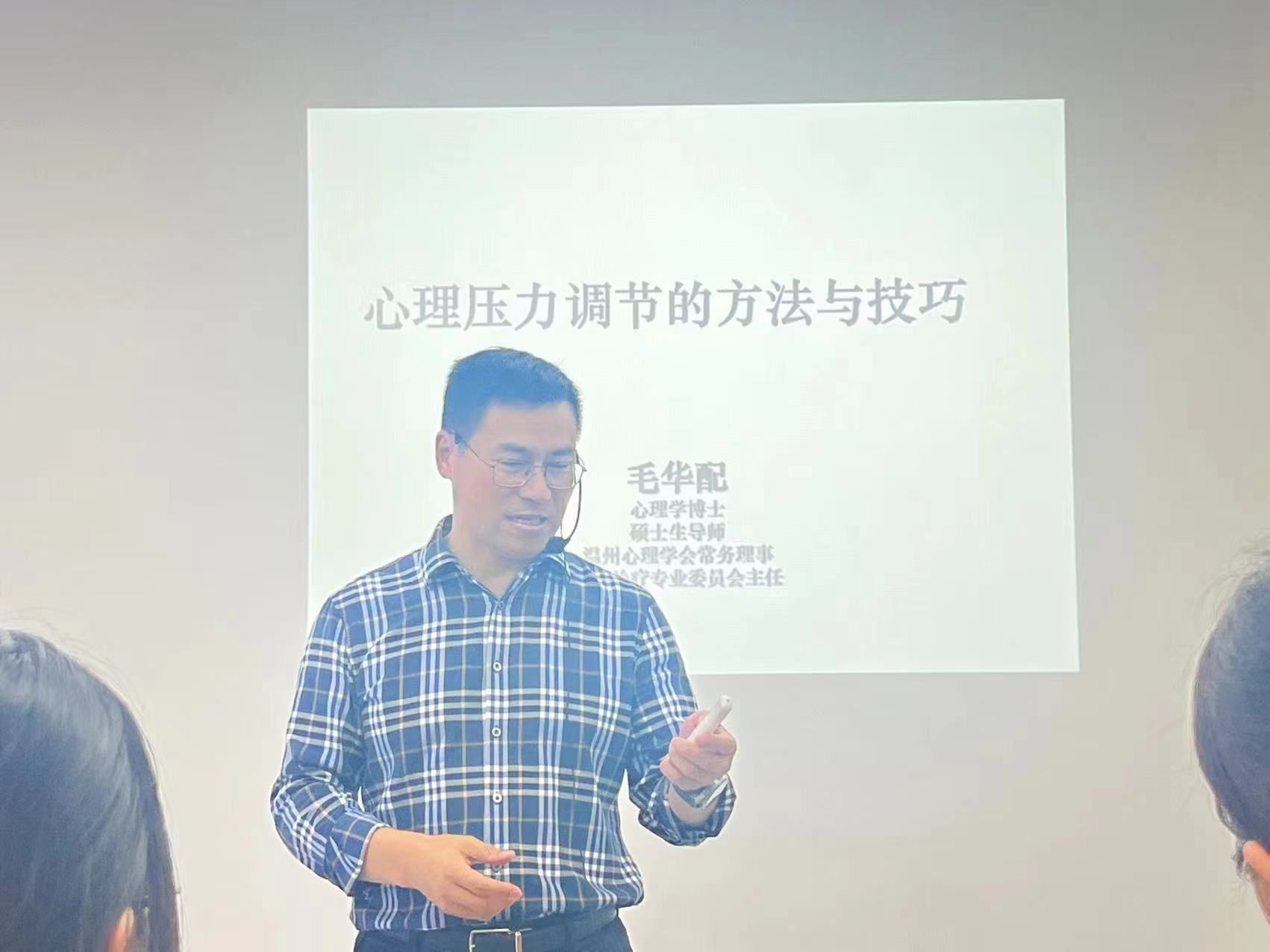 校心理中心徐延兵老师做《大学生心理危机的识别、预防与干预》专题报告,他以丰富的理论知识和实践经验为基础,深入浅出地讲解了心理正常与异常的判断、心理危机的识别与协作、心理危机谈心谈话要点等内容。他特别强调了每个学生都是自身心理健康的责任人,校园中的每个学生和老师都是危机干预的主体,早发现、早报告是危机干预的要点。辅导员作为学生最直接、最亲近的教育者和管理者,在学生心理危机干预中有着重要作用,应该具备高度的心理危机识别能力和干预能力,及时发现学生的心理问题并予以解决。此外,商学院金融系专任教师毛华配老师为同学们带来《心理压力调节的方法与技巧》专题讲座,他列举了常见心理健康问题类型、当下大学生常见心理健康问题的成因以及应对模型,让大家能够正确认识、区分自身心理健康情况。同时结合一系列生动案例,分析压力的来源,将压力具体化,配合具体的调试方法,实现压力释放和能量转变。