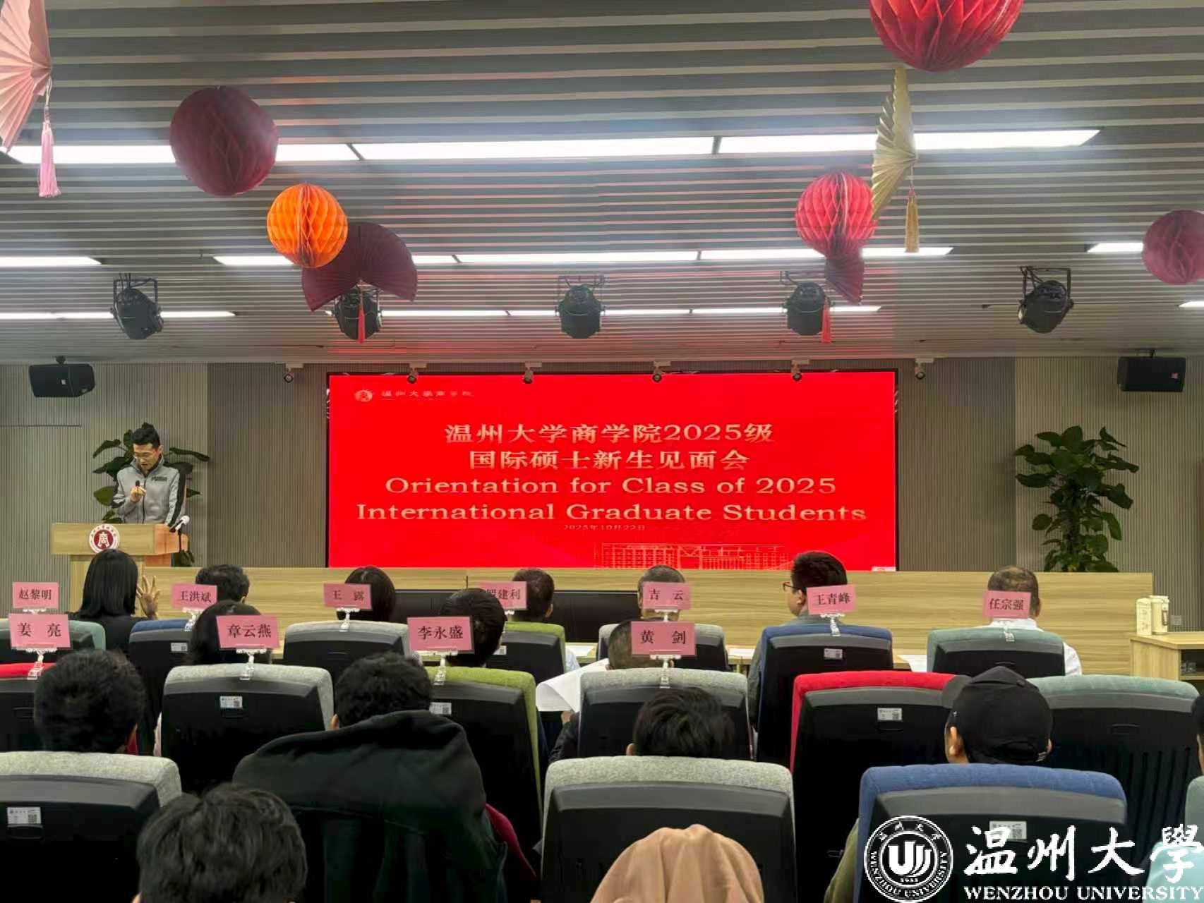 2025年10月22日下午,温州大学商学院2025级国际硕士研究生新生见面会在商学院A226会议室隆重举行。商学院院长罗建利、商学院副院长王露、2025级国际硕士研究生导师、27位2025级应用经济学国际硕士研究生以及17位2025级应用经济学青山班硕士研究生等出席了此次会议。会议由国教部主任姜亮老师主持。