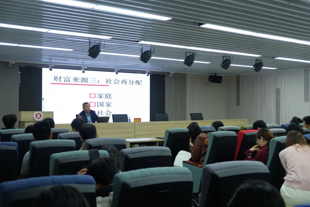 胡院长指出,商学院的建设和发展要体现出“商”的本质,要立足于新时代中国特色社会主义发展的阶段,从温州当地发展需要出发,培养出具有战略眼光、社会责任感的商界精英。胡院长生动地同我们讲述了改革开放以来温州人敢为天下先,勤劳拼搏致富的历史、指出个人在追求幸福追求事业成功的道路中必须同国家命运和世界发展潮流紧紧地联系在一起。胡院长从稀缺性,相对性,绝对性,可变性等多维度出发分析了财富的来源。胡院长指出了财富的含义,在不同的历史时期有着不同的内容。从过去的工薪,劳动,土地,利息,和企业家的正常利润到现代化的创新,冒险和科技专利再到社会再分配中的家庭,国家,社会因素中的社会福利。