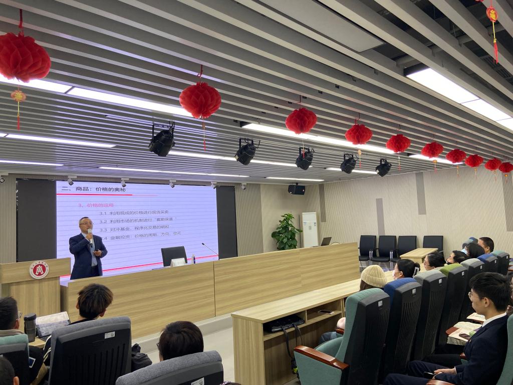 随后,谭校友结合自身经历与在座的师生分享了“价格”的奥秘,用一台手机与一套房子的不同决策告诫我们要具备对人生的规划和理财知识,又提出只有家庭财务的稳健发展才能带来幸福的一生。他希望同学们能更加去关心“钱”,关心价格的波动、关心身边的经济。他从货币、价格、商品的含义,集合竞价的原则和过程,现代金融市场的发展概况,如何进行价格的预测等四个方面深入解读了“价格”和如何面对“价格波动”。