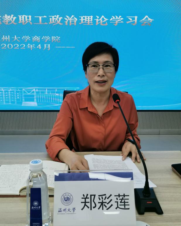 郑彩莲书记作会议总结,她指出2022温州市“两会”的胜利召开具有重要意义,我们要进一步深入学习市“两会”各项报告,全面领会市“两会”精神,迅速统一思想和行动,围绕商学院“锚定3510,奋进2022”年度工作主题主线,尚信明道谋发展、勇毅笃行向未来,全面建设高水平教学研究型商学院,助力“千年商港、幸福温州”建设,以优异成绩迎接党的二十大。