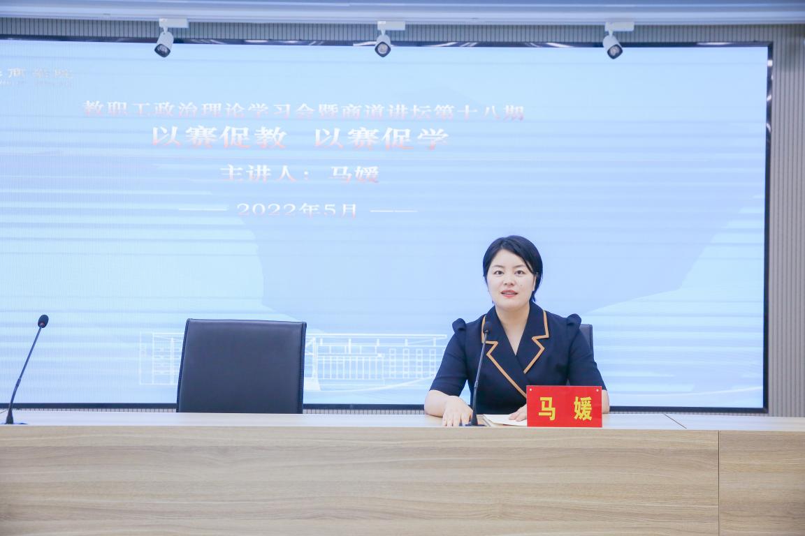 2022年5月25日下午,商道讲坛第十八讲在北校区商学院A226仲辉商道讲堂开讲。温州大学商学院副教授、浙江省线下一流课程、省课程思政示范课负责人马媛带来题为《以赛促教,以赛促学》的专题讲座,学院全体教职工参加学习。
