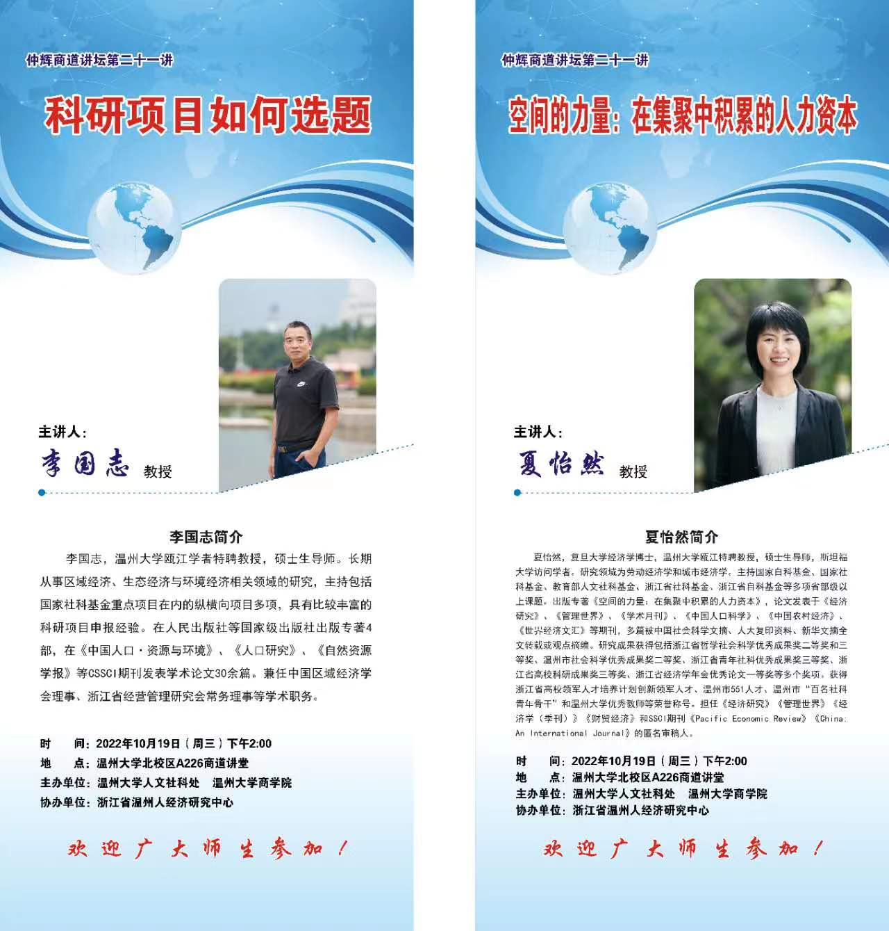 10月19日下午2点,商学院在A226商道讲堂举办国家基金申报经验分享会。会议邀请到获得2022年国家社科基金项目立项的李国志教授和夏怡然教授来和大家分享一下他们在国家级项目申报和研究中所获的心得和经验。