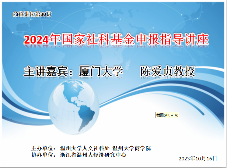 2023年10月16日,温州大学商学院在A222会议室举办了一场2024年国家社科基金申报辅导会。会议邀请了厦门大学博士生导师陈爱贞教授做主题报告。十多位学院青年骨干教师参加会议,会议由温州大学商学院教授、温州市数字贸易研究院院长林俐主持。