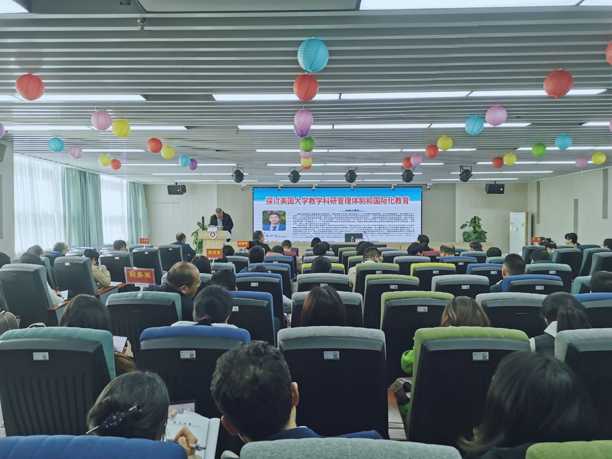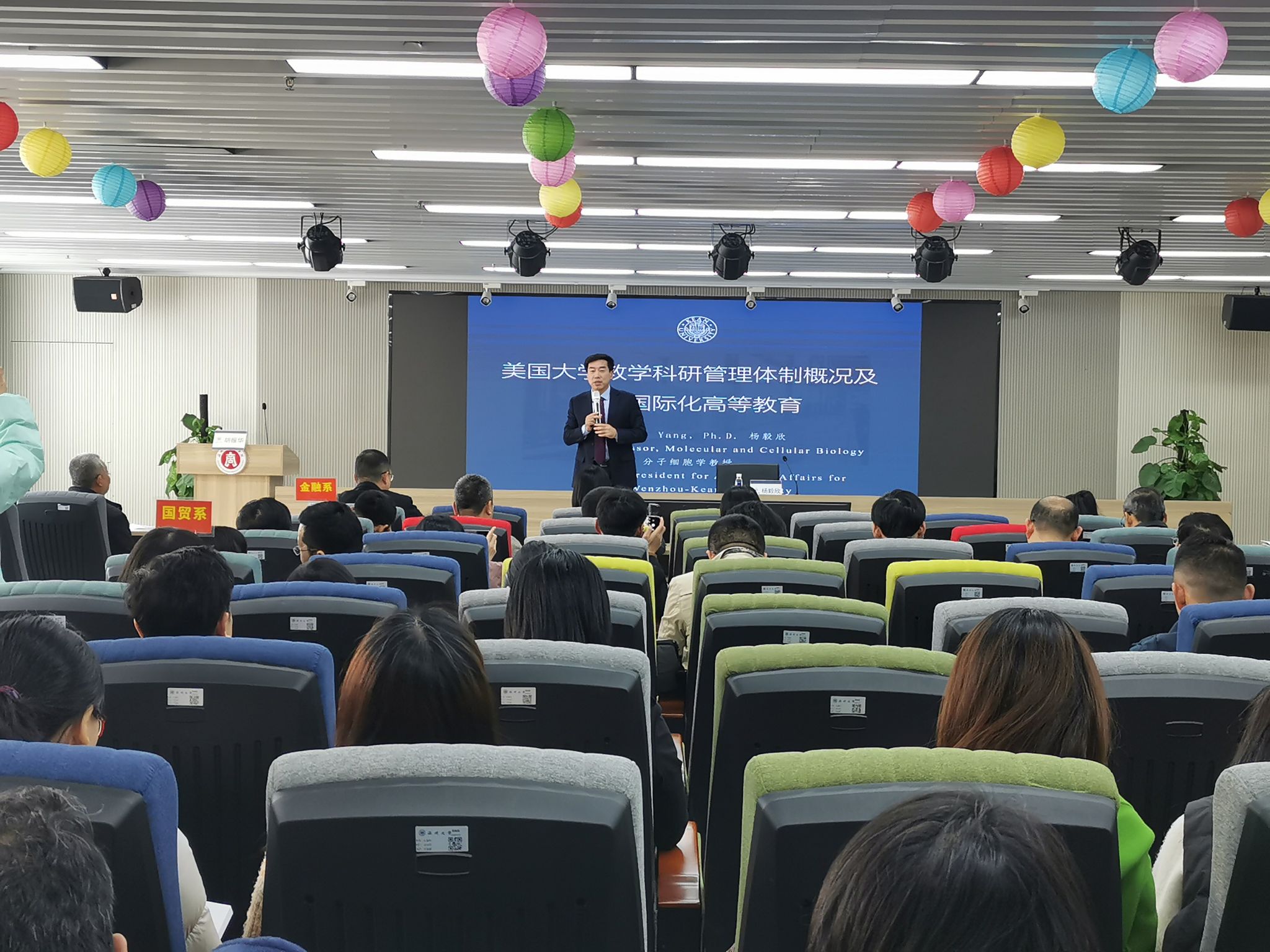 2023年12月6日,商学院特邀温州肯恩大学副校长杨毅欣教授探讨美国大学教学科研管理体制和国际化教育。会议由学院院长胡振华主持,学院全体教职工、部分学生参加。